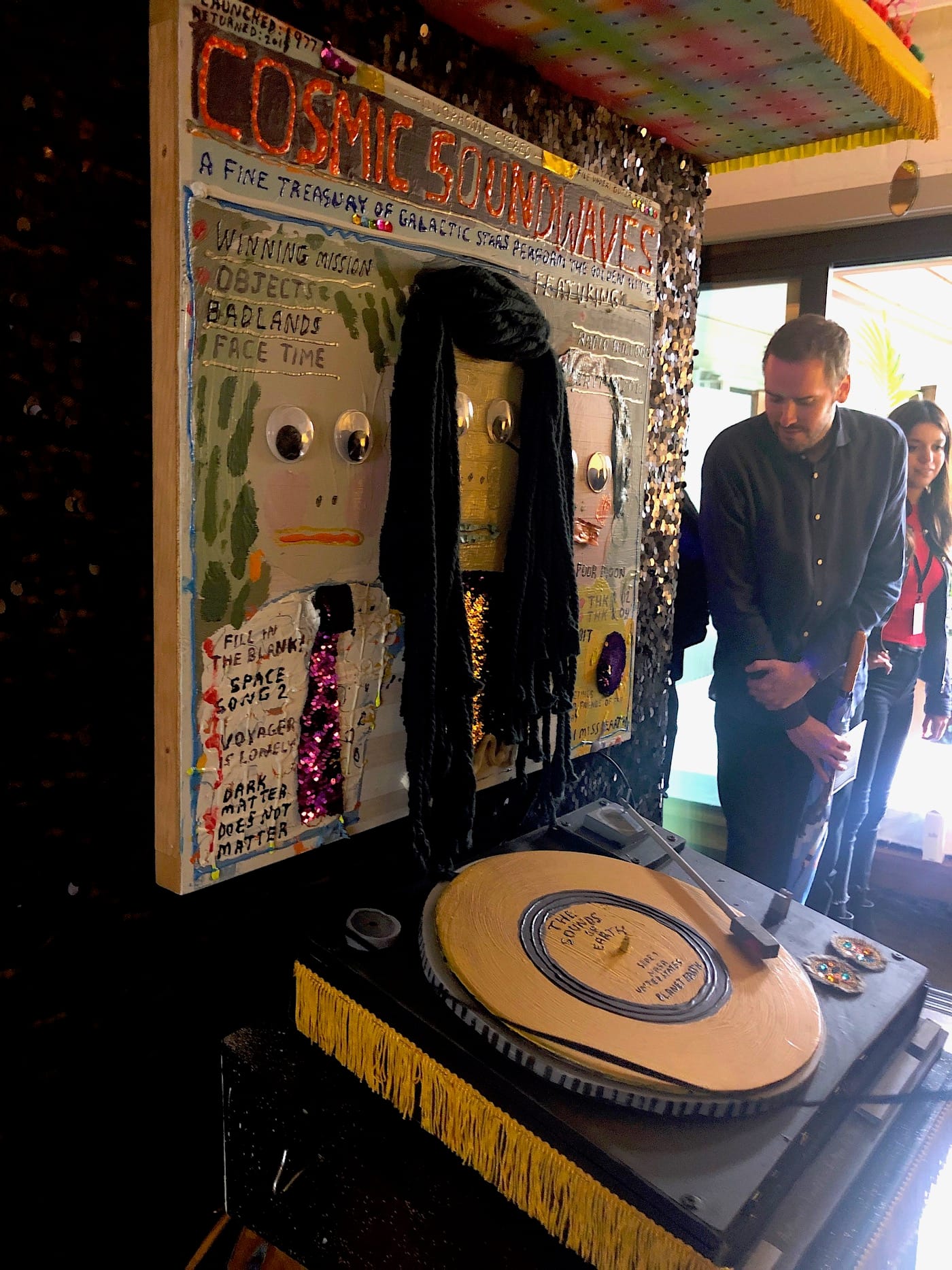 LOS ANGELES — After a morning of uncharacteristically torrential rains, Felix, the debut art fair of mega-collector Dean Valentine, opened in the historic Hollywood Roosevelt Hotel to much fanfare and generous attendance. The fair consists of two main sections with special projects interspersed throughout the building. The first, and far more accessible section, the Cabanas, hosts everything from a brightly colored interactive musical booth by Esther Pearl Watson and Mark Todd at Susanne Vielmetter to a more serene selection of Roger White paintings laid out lovingly on a hotel bed at Grice Bench. Fair-goers can weave in and out of the ground-floor poolside rooms with relative ease, though expect the usual hustle-and-bustle feel of art commerce in action.