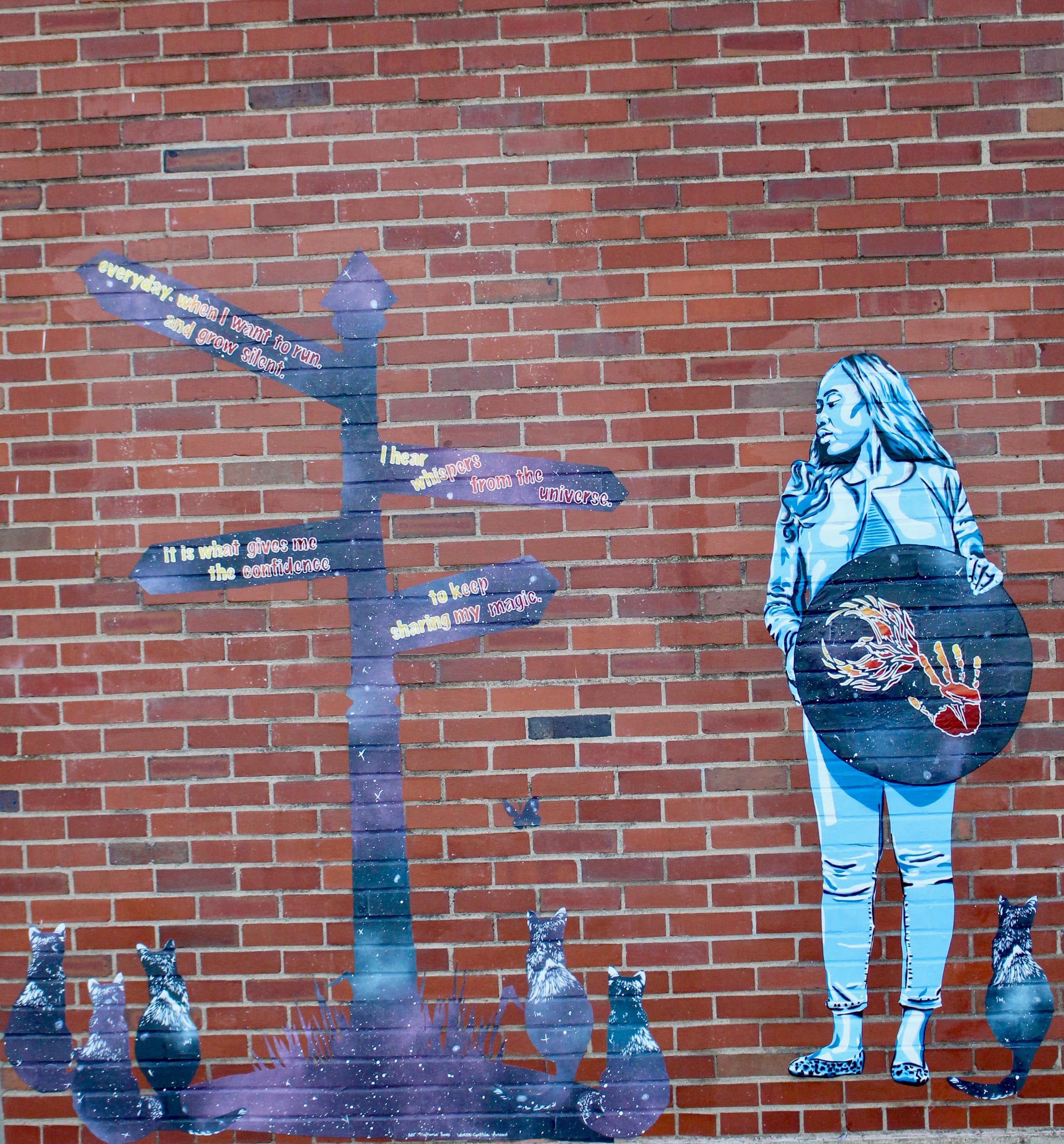 Hailing from Ohio, Stephanie Rond has collaborated on a variety of local art projects, started a gallery (of sorts), and founded the site Women Street Artists (now run with fellow artist and research scientist Amy Leibrand). Rond came to graffiti and public art through a disdain for the sexual objectification of women in advertising. She wanted to foster these conversations and bring the female narrative into outdoor spaces, many of which were built for and designed by men. Rond started doing street art in 2007 anonymously, but it became important to her that audiences — specifically young girls, potentially aspiring artists — knew she was a woman, so she “started creating art as [herself].”