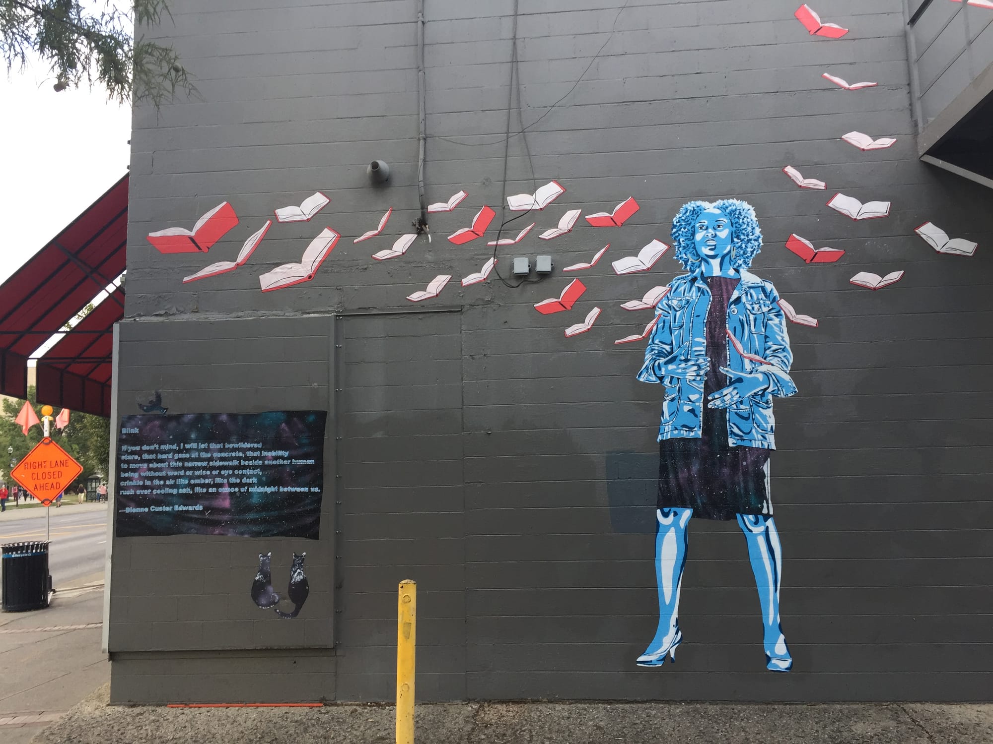 Rond launched Women Street Artists to highlight and elevate her peers. Her most recent series embodies this. It’s an ode to oft-forgotten or under-represented women poets, such as Cynthia Amoah, Dionne Custer Edwards, and Barbara Fant. Her gallery, S.Dot, also engages ideas of access and interrogates concepts of domesticity and class. It uses a dollhouse as its physical stand-in, while all the work is posted online. Based on social media, some people mistakenly believed it to be a life-sized gallery, and when some inquired about having their works featured, she decided to say yes. “Who owns space?” she asks. The gallery she runs at Columbus Metropolitan Library also zeros in on the importance of representation in the public sphere. “Art, it’s a necessity.” Everybody, she asserts, has the right to see and hear reflections of their own voices.