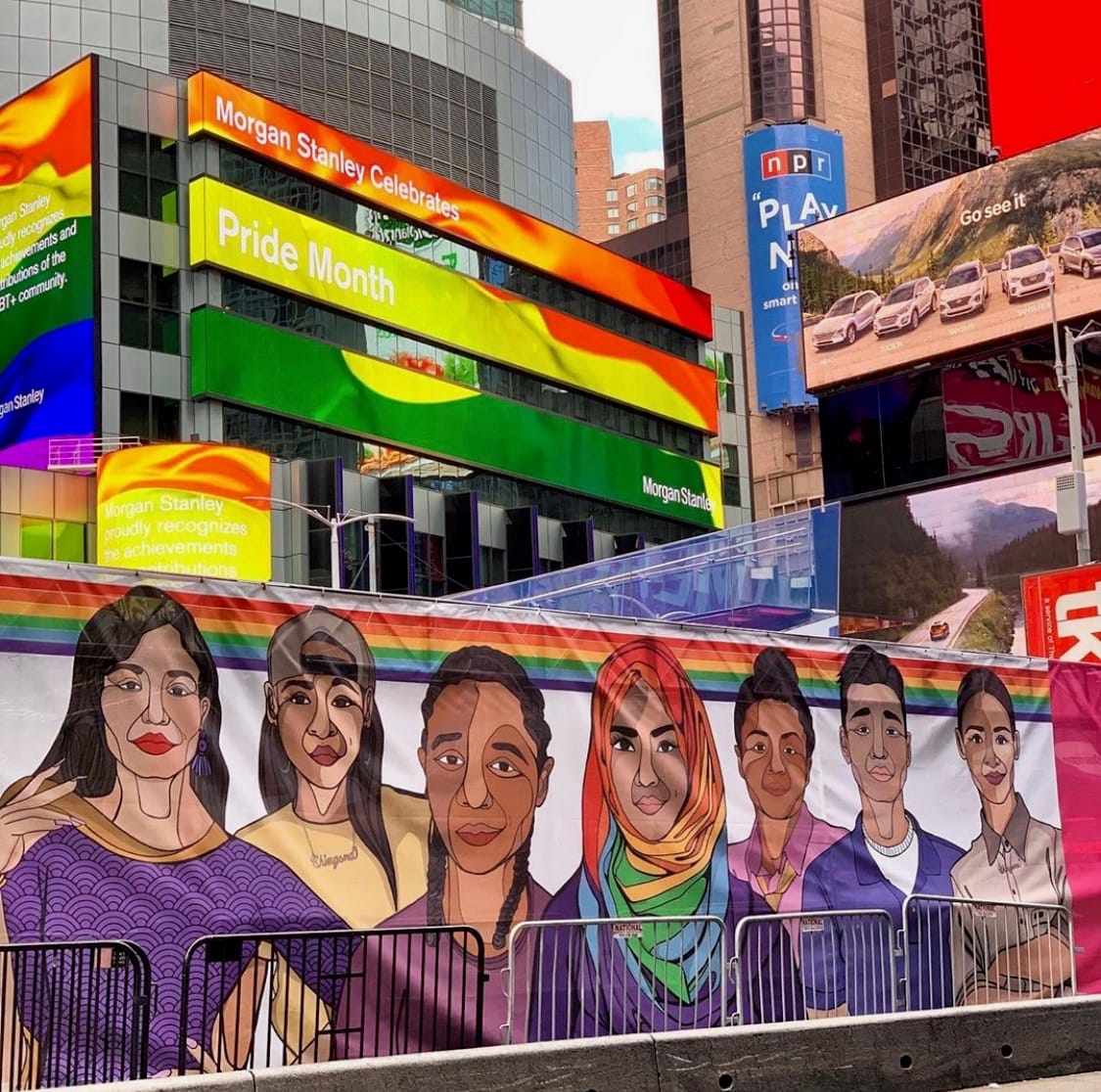 Kirk started out on a very different path, in marketing, but art commissions kept rolling in. Her work as a street artist picked up speed until it overtook her 9-5. But her roots are apparent in her art. As a queer woman often on the receiving end of hate crimes, growing up on Chicago’s South Side with a dearth of representation inspired her to paint that representation onto the walls of public spaces. But in 2019, obstacles still exist. Property owners in parts of Boystown in Chicago, and even in Harlem, didn’t approve of pieces she proposed. But Kirk perseveres. Following her mural for the Lisa Project commemorating Victoria Cruz on the 50th anniversary of Stonewall, Kirk intends to donate some 350 feet of banner (broken up into around 20 individual posters) plastered around Times Square for World Pride to LGBTQ+ centers around the country that may not have the funds to commission such work.