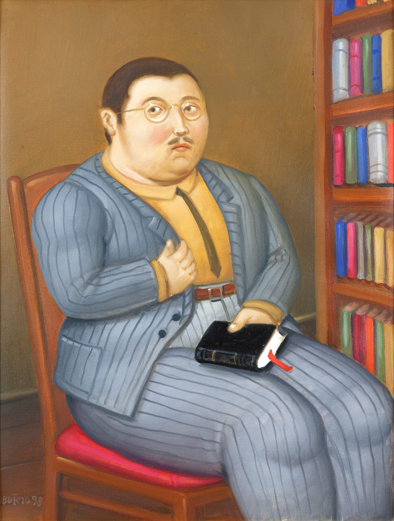 The plumpness that stands out in Botero's work was not a commentary on fat people, but rather the artist's appreciation for the sensuality of curvature and form. He approached all of his subject matter in this way, rendering objects, food, wildlife, and people ranging from sex workers to religious figures to royalty with the same inflated appearance that lent itself to a form of detail-oriented monumentalism with a touch of humor.