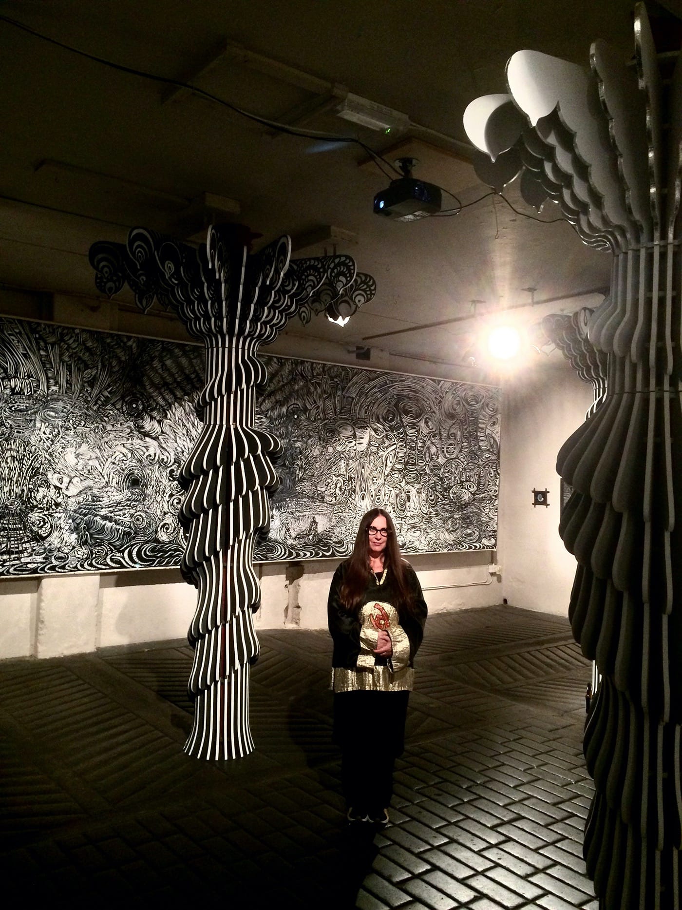 Ward told me, “I first heard about this mysterious building at the time of the punk-clothing exhibition. Then I vividly remember Joe Coleman’s show in 1998. I had never seen an exhibition hung like that before — stark, brutal, and heavy with a dark theatrically. The Horse Hospital’s lofty interior dripped with atmosphere and was dimly lit by naked light bulbs dangling in front of Coleman’s insane works, some made from prisoners’ shirts. It was a turning point in my life. Once lost in the wilderness, at last I had found a place where I felt I belonged.” (Comments from Ward and other sources were received by e-mail.)