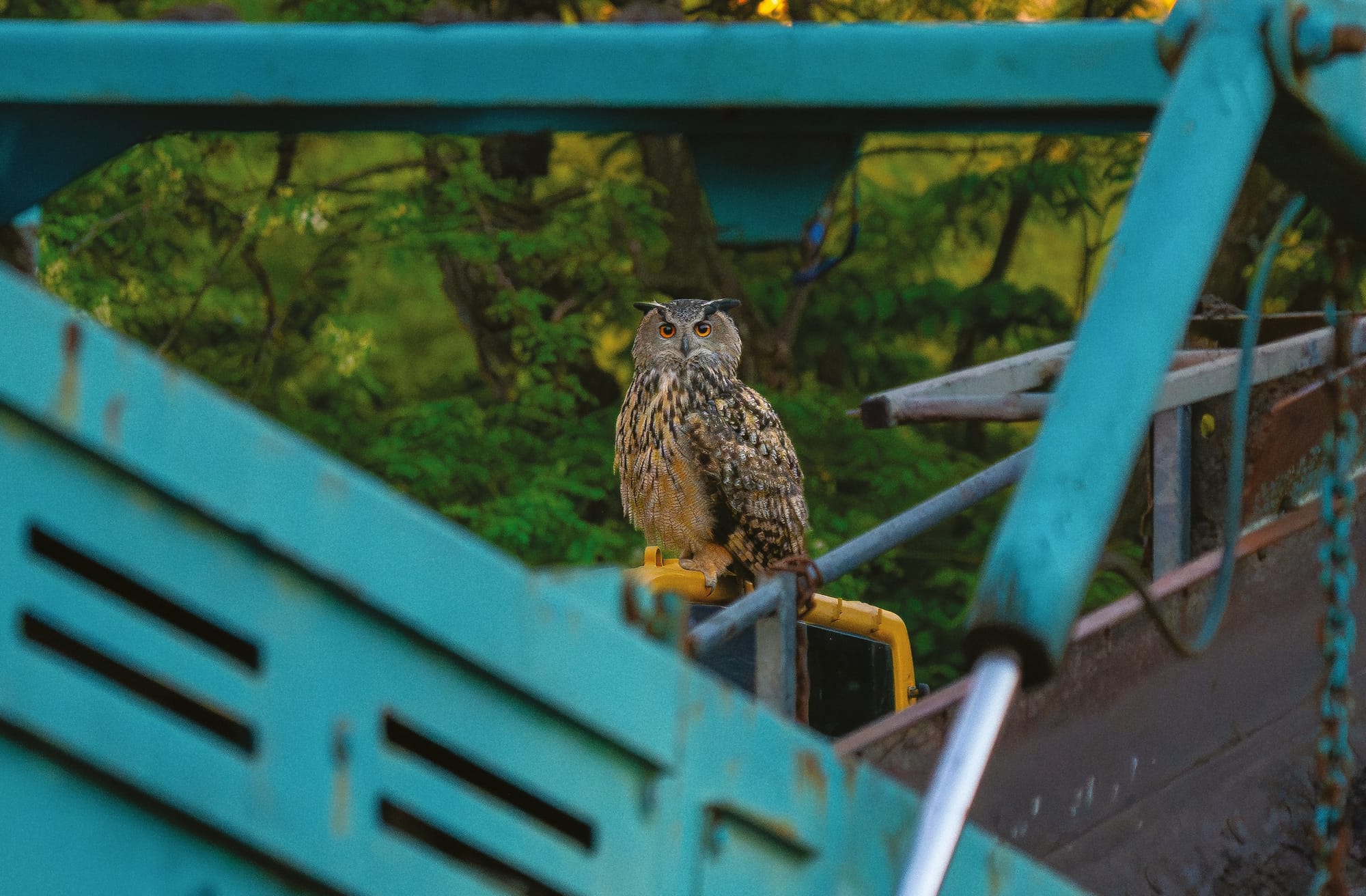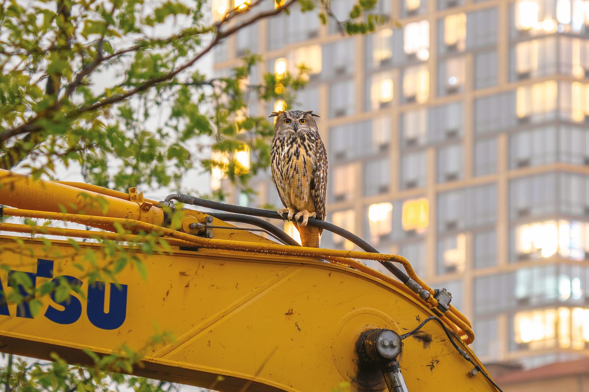 Photos of the magnificent raptor nestled in tree branches and chowing down on city rats are juxtaposed with images of him perched on construction vehicles and active worksites, evaluating his surroundings and understanding his place in the big city like so many of us as we slink under scaffolding and weave through traffic barriers.