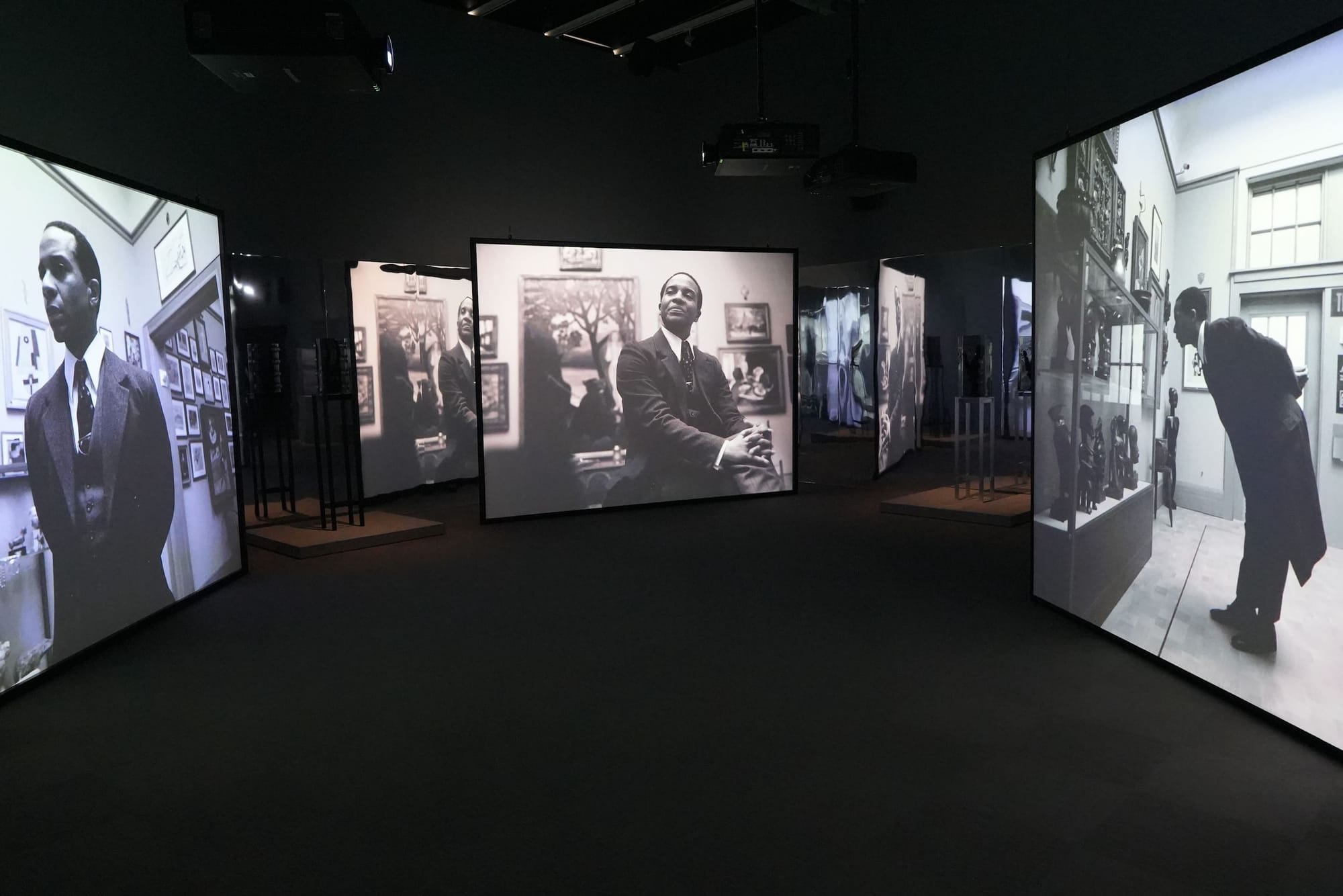 This installation, which features multiple screens and five historical and contemporary artworks, encapsulates what the veteran queer British video artist does best: enabling us to linger and examine those moments of interpersonal desire and connection that are often overlooked in a field seemingly obsessed with objects. The videos are the stars of this presentation, as the objects feel obscured and pushed to the edges, perhaps to suggest that they are receding into the shadows to allow the voices of those who placed them there to shine. While the work focuses on the Pitts-River Museum in the United Kingdom and the Barnes Collection in Pennsylvania, the artist decided to use the interiors of the Pennsylvania Fine Arts Academy, as well as other spaces, as a stand-in for the original Barnes mansion-turned-museum. This was one of the best videos in a Biennial with some very strong video work. — HV