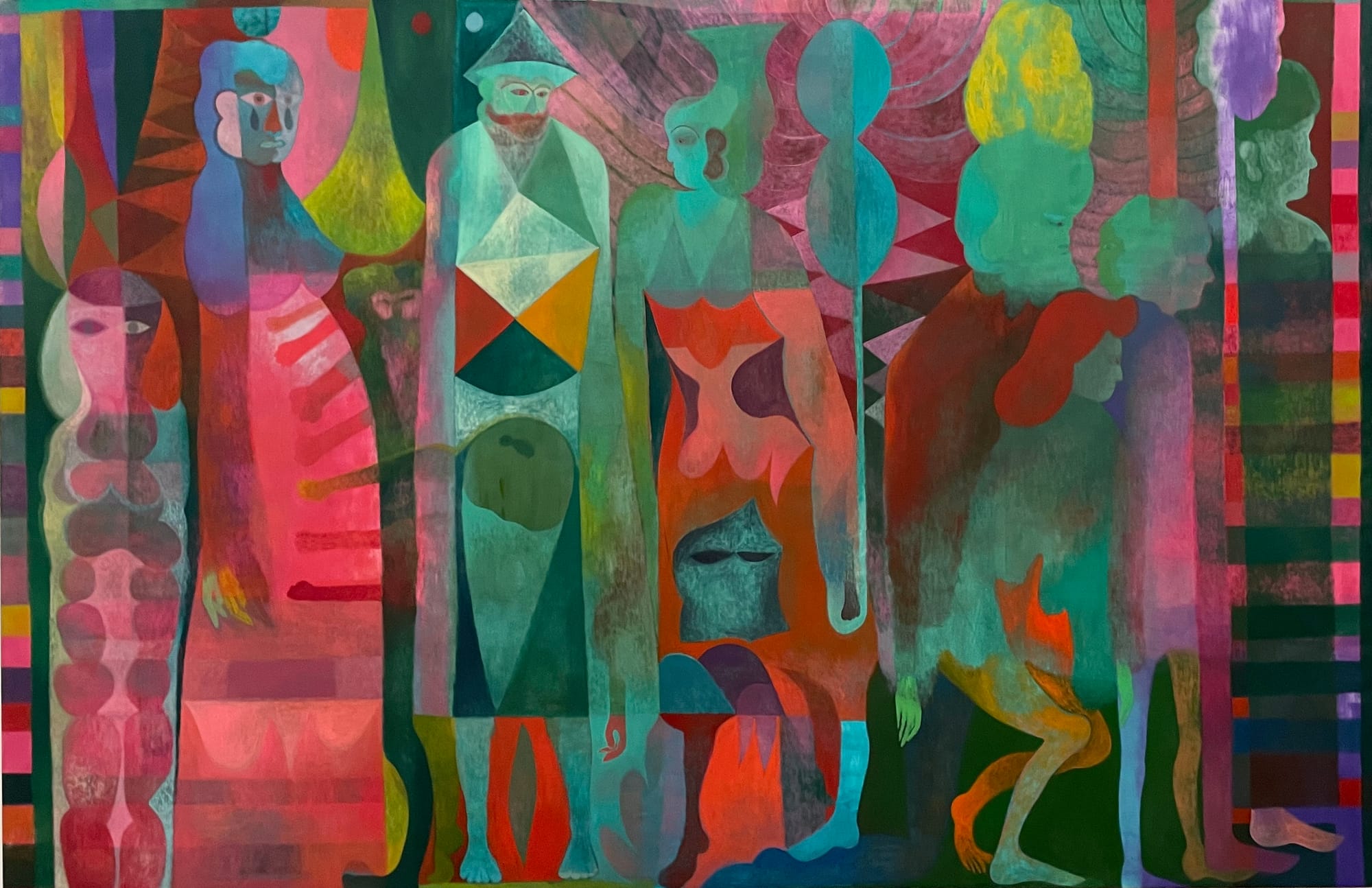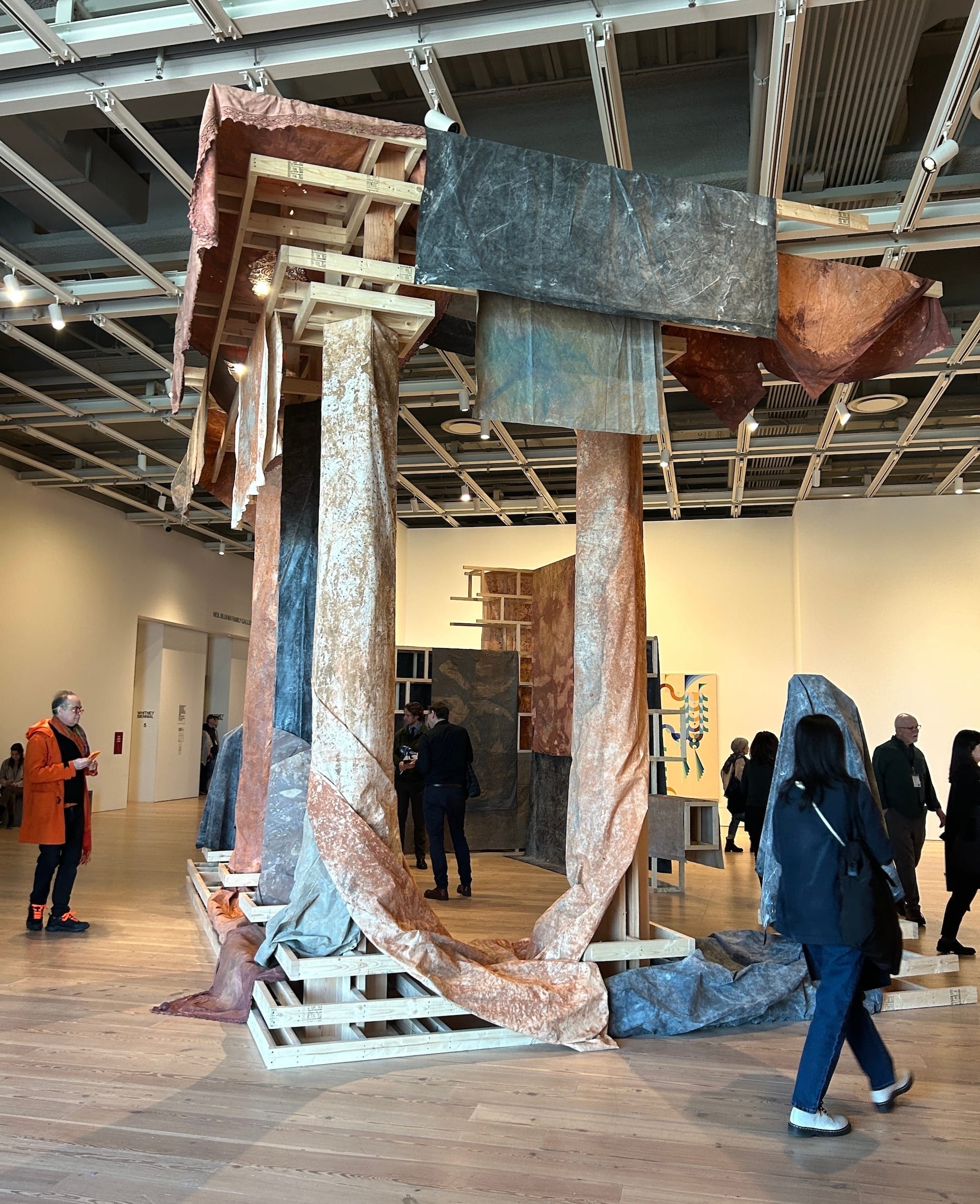 Paintings were surprisingly numerous at this year’s Biennial, but only a few commanded my attention. My favorites were two massive oil-on-linen works by Maja Ruznic. Although inspired by childhood memories of living in an Austrian refugee camp after fleeing her home in Bosnia during the Bosnian War, the colorful, dreamlike imagery evokes many barely remembered memories and pasts. In particular, the tall, totemic figures fading in and out of definition in “The Past Awaiting the Future/Arrival of Drummers” (2023) suffuse carnivalesque colors and patterns with an air of solemnity that recalls Max Beckmann’s strange, foreboding “Fastnacht” ("Carnival") paintings and prints. — NH