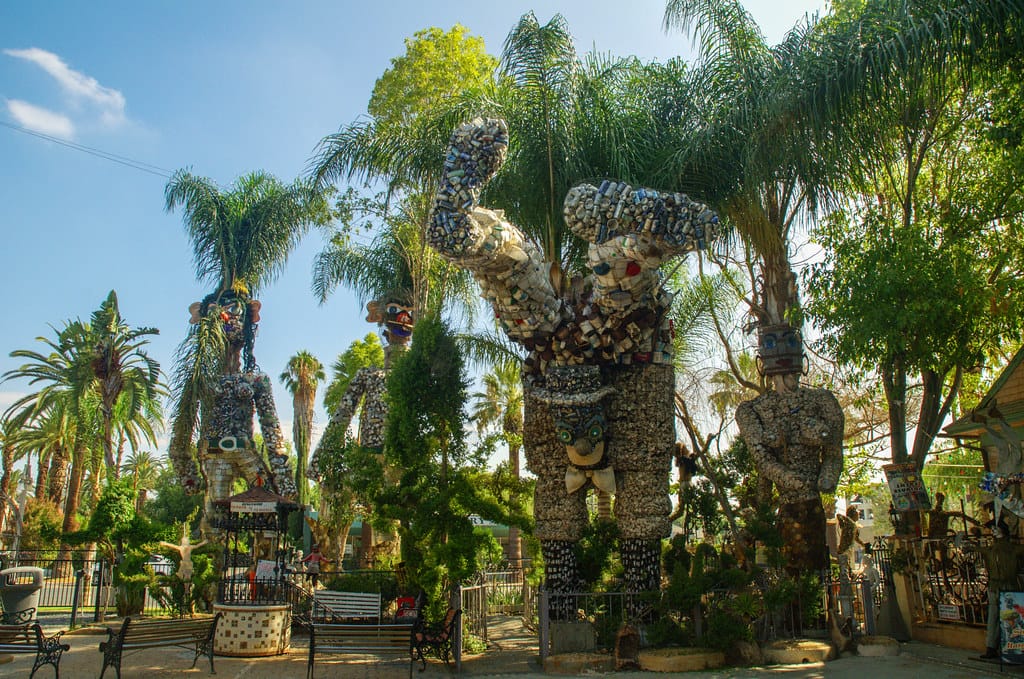 For almost 30 years, Riverside’s Tio’s Tacos has been serving up Michoacán-inspired burritos, tacos, and other Mexican fare. However, the food is only part of the draw. Growing up poor in Mexico, Martin Sanchez learned to reuse items that most people would discard. He held onto this lesson even after emigrating to the US, and began making sculptures from recycled materials. The restaurant’s garden is now filled with his assemblages — from massive figures made from bottles, to mosaic paths, skeletons, dinosaurs, and murals — that make Tio’s Tacos as famous for its art as for its food.