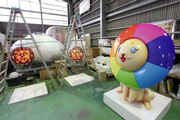 Though the artists we’ve seen above keep intimate spaces for their art making, Takashi Murakami requires a full staff to carry out his manufactured projects. Still, even this storage space has some of the character of Murakami’s work, a playful sense of the surreal.