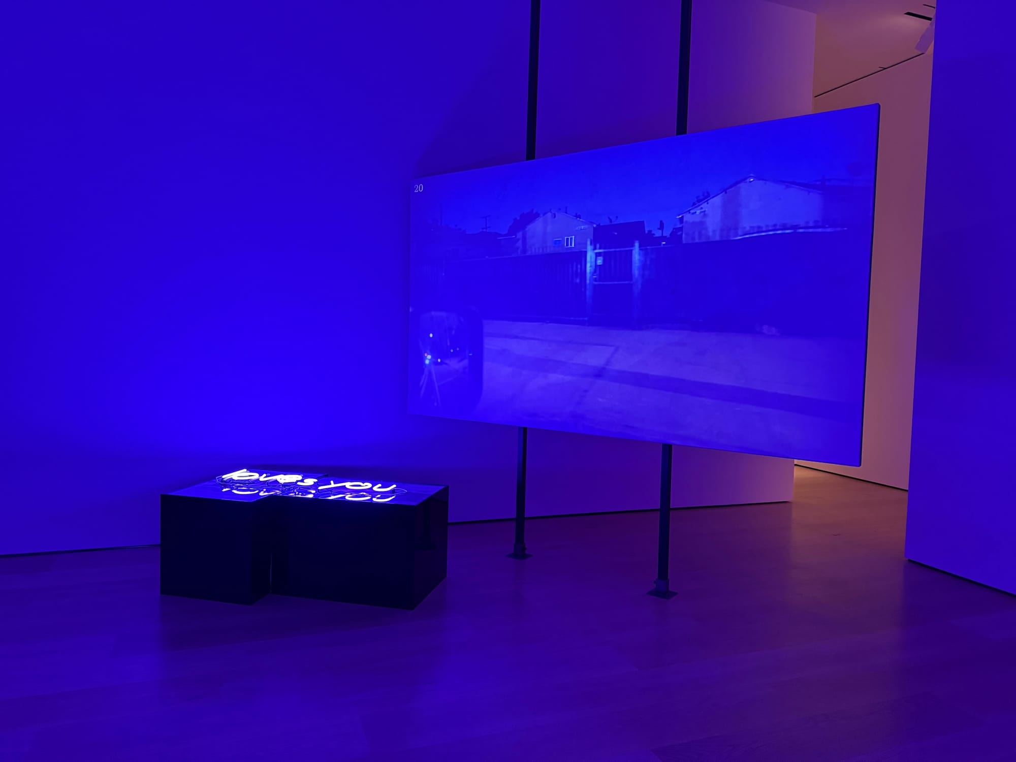Freddy Villalobos’s installation “waiting for the stone to speak, for I know nothing of aventure” (2025), references the death of famed soul singer Sam Cooke as a vehicle to explore historical cycles, as it collapses the past, present, and future of LA. The work is centered around a video documenting a nighttime drive up Figueroa Street, from the Hacienda Motel where Sam Cooke was shot and killed in 1964 to the county morgue. The meditative single-shot, lasting nearly two hours, traverses time and space, from the historically African-American neighborhood of South Central where Villalobos grew up, north to the area being transformed by the University of Southern California’s ongoing expansion, to the LA Live entertainment complex and the infamous graffiti towers, examples of a “failed future,” as Villalobos called them.