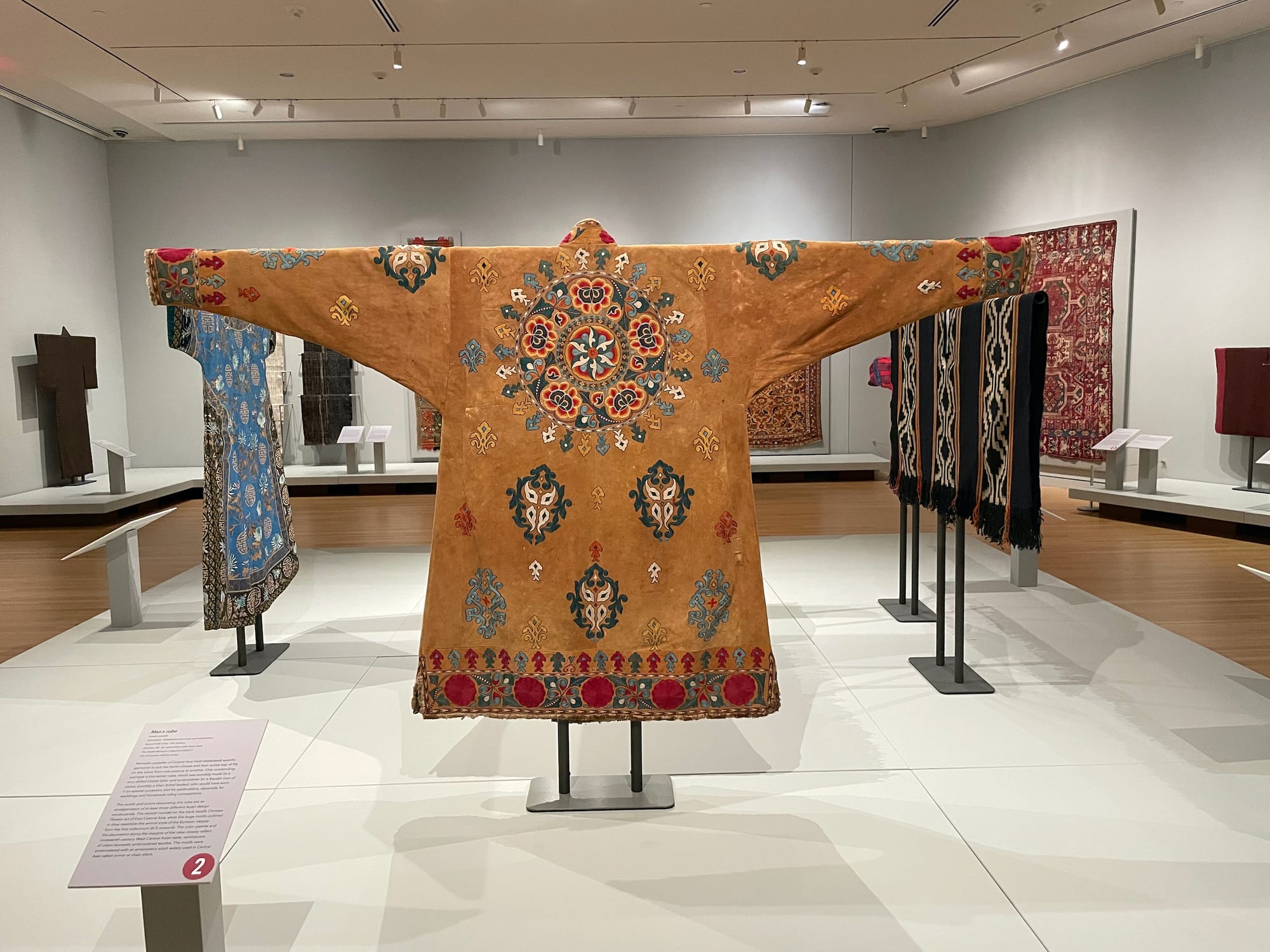Washington, DC has a rich subculture of textile revolutionaries — the No Kings protests were full of both paper and textile signage calling for representation and liberation. Fittingly, the Textile Museum’s fall exhibition, celebrating its centennial, examines the myriad roles that textiles play in religious, political, and social spheres. From prayer carpets to beautifully embroidered royal robes, textiles are essential parts of our lives. This exhibition digs into the museum’s collections to display some of its most colorful, complex, and culturally significant wearables.