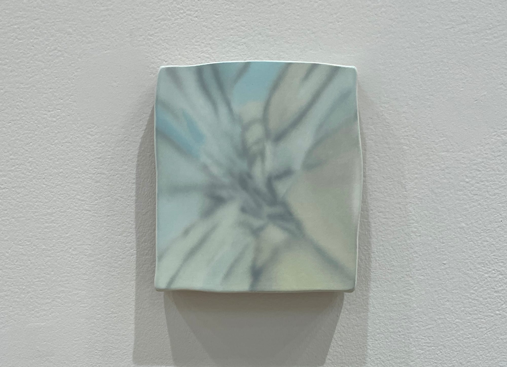 A quick glance at Luz Carabaño’s oil paintings could lead someone to dismiss them as lightweight crowd pleasers. Their convenient sizes, most ranging from tiny to merely small, and sweet, muted palettes make them almost too charming. But spend more time with them and their complexity unfolds. The artist works on canvases that are just a little irregular, like a rectangle drawn with an unsteady hand, undulating subtly. Nothing about the works seeks to greedily grab attention. Instead, their smooth, luminous surfaces, stained with amorphous dots and lines, become ever more hypnotic. In her 2023 Hyperallergic review, Renée Reizman likened them to “nebulae, swamps, or glazed confections.” Here, the hazy sheen of “estrellón” (2025) combines with its pale blue and peach palette and soft radiating beams for something that seems far bigger than its five by five-and-a-half inches; its lustrous light appears almost divine. Similarly, the cloud-like forms in the minty green and white “cruce” (2025) evoke a world on the cusp of memory. Sit with the exhibition for long enough and you might feel like you’re dreaming. —NH