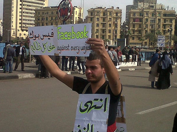 Al Jazeera’s Egypt coverage has proven how antiquated the rest of the TV news landscape is — with the exception of BBC — and the Qatar-based channel even has a Flickrstream with some fantastic images, including a photo with a prominent use of Facebook (above), a colorful and shiny “Go” sign, and some protest flowcharts that are also so geeky & weird that I want to tumble them.