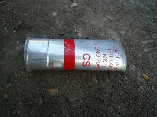 Then via this rather anonymous Flickrstrea, flickr.com/civilianworld, we find some chilling photos of clouds of smoke at a protest, a canister of tear gas (above), empty shell casings, and a small inspirational sign that evokes the American civil rights struggles of the 1950s and 60s.