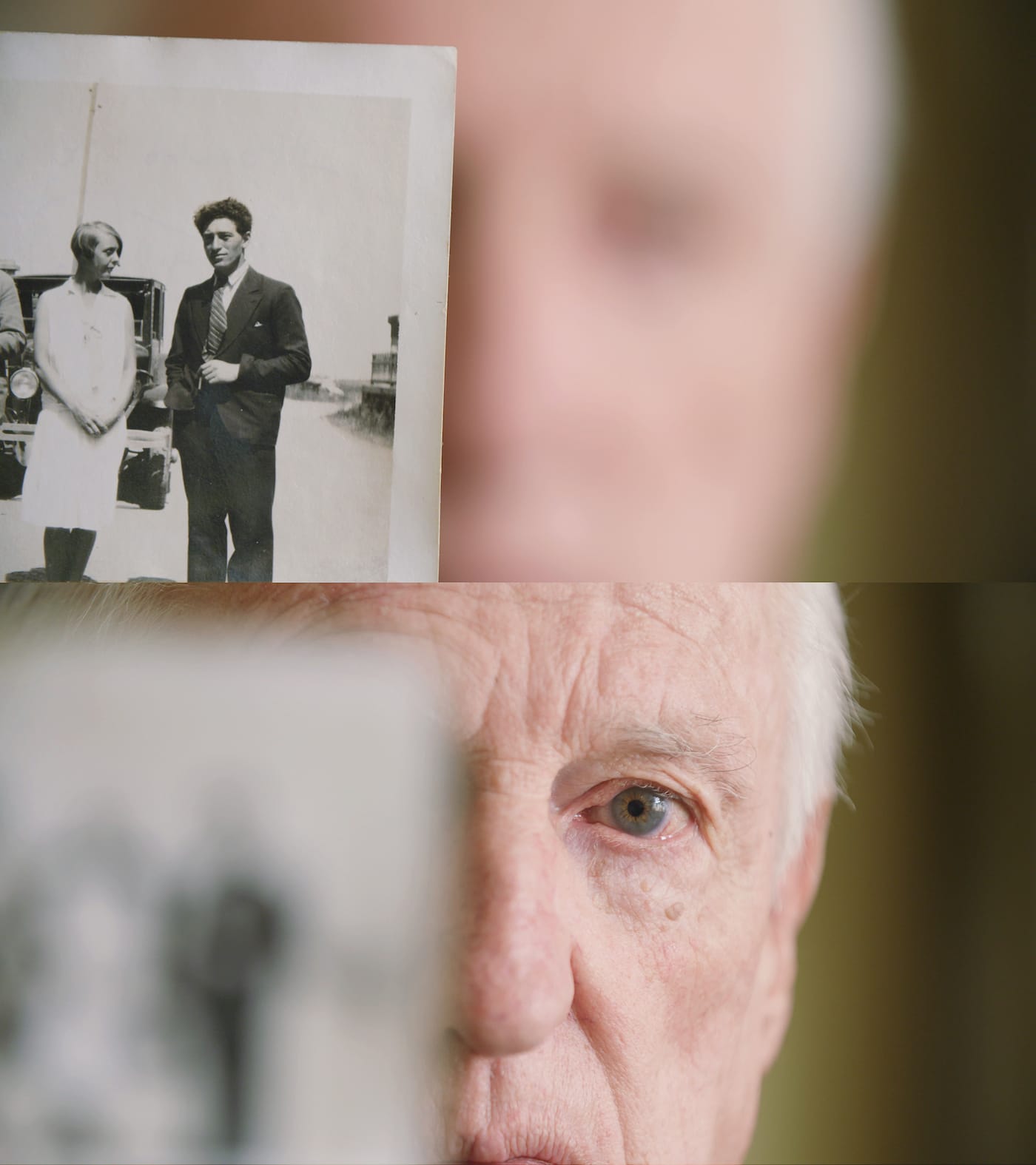The opposite side of the screen is a black-and-white (save for one crucial transition into color which I’ll discuss in a minute) narrative that takes place entirely in a meticulous re-creation of Flora’s 1926 Paris studio, including a skull on a shelf, a wooden doll, and well-worn carpets. It’s synchronized to the same soundtrack featuring David Mayo’s voice, the Flora voiceover, and music, and exactly how Hubbard and Birchler achieved this synchronization so impeccably is a marvel. You see the young Flora (Julia Zange) intently sculpting her bust of Giacometti, who is sitting across the room.