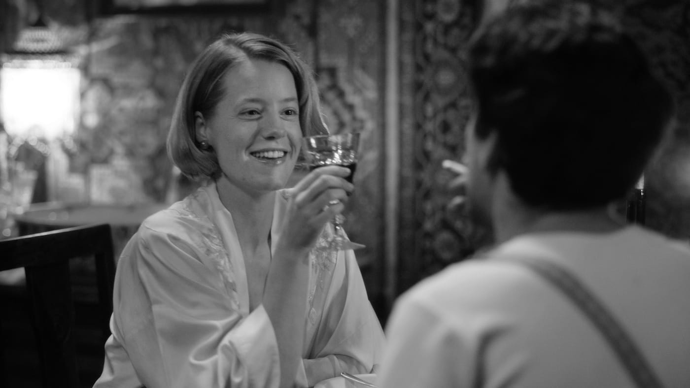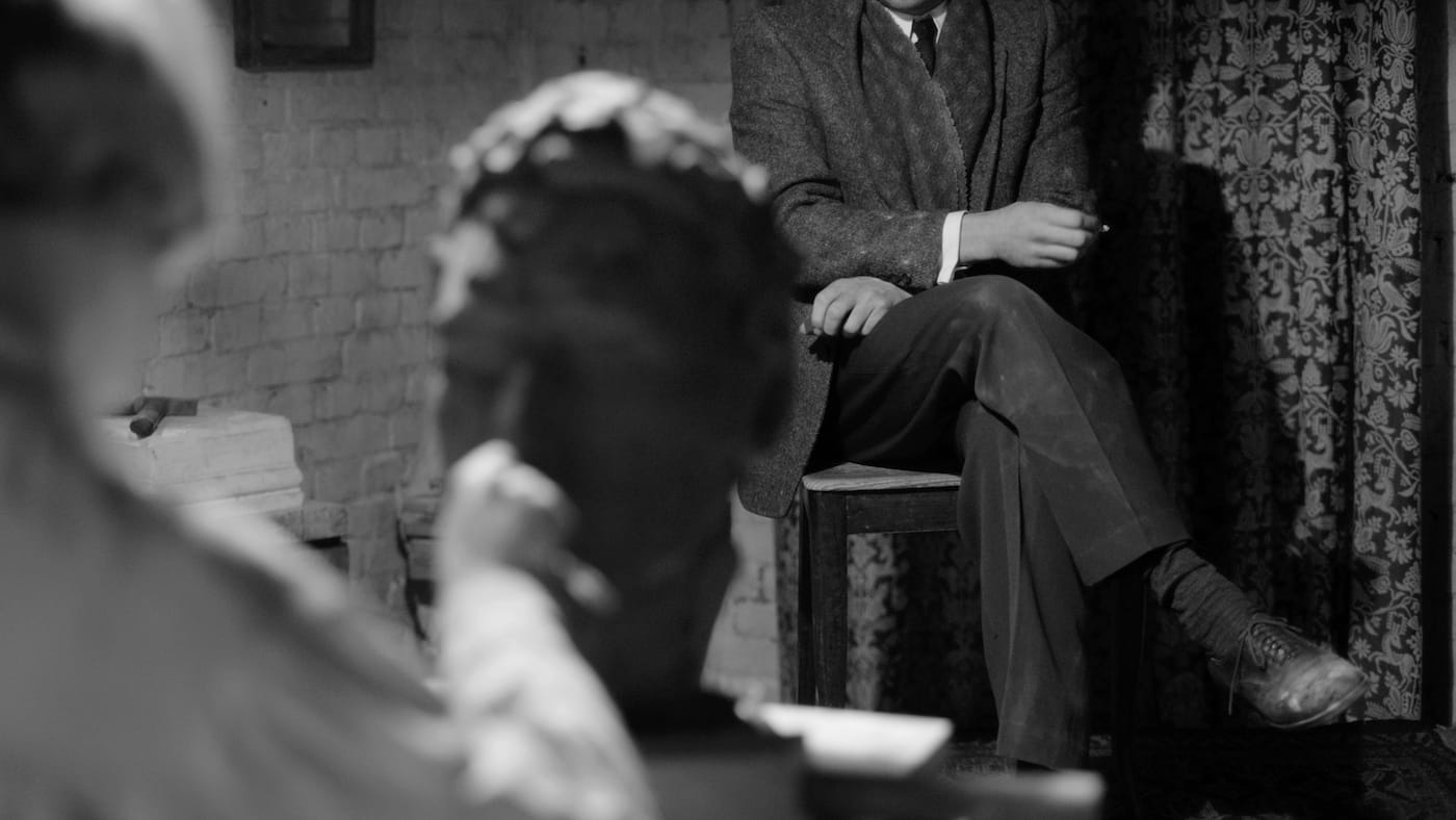 Traditional roles are reversed: not a male artist scrutinizing a female model but a female artist eyeing a man. Flora hardly says a word (same for Giacometti, played by Jules Armana) but the intense, ever-changing thoughts and emotions playing over her face speak volumes. It’s also not just art but the life of this studio that is so important: Flora chopping wood to make a fire in the cold morning; pouring milk into a dish for the hungry cat who laps it up (Melville, the cat, is acknowledged as an actor in the film’s credits); weeping on the bed. Flora sways and Giacometti twists as they dance together to a jazz record; a shot of their scruffy shoes moving across the floor is utterly endearing. The two share a meal, with wine, and playfully smash a hard-boiled and raw egg together, not knowing which was which (Flora has the hard-boiled one). You feel their ardor and delight. And you can’t help but think that here, or in a similar place, is where Flora really belonged: in a studio, as an artist.