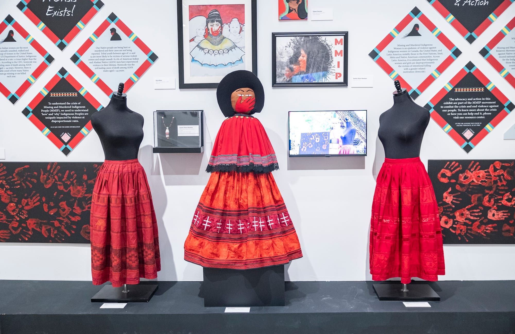 A separate section of the show deals with a somber reality. The "Crisis Wall” is dedicated to the Missing and Murdered Indigenous Women epidemic, encouraging advocacy and education to address alarming rates of violence. A wall text states that murder is the third leading cause of death for Native women and girls.