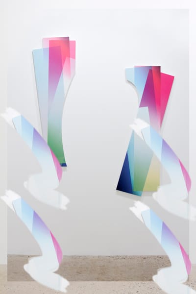 Image Objects are a series of works which exist somewhere between physical sculpture and altered documentation images. Each piece begins its life as a digital file of which countless variations exist. These are then rendered as UV prints on sintra and precision cut to the form of the piece to create photographic prints with the depth and presence of a sculpture. Each time the pieces are documented officially by the artist or by a physical publication and or on the internet the documentation becomes a separate work in itself, incorporating elements of collage techniques commonly used in professional image retouching aestheticised digital watermarks and more.