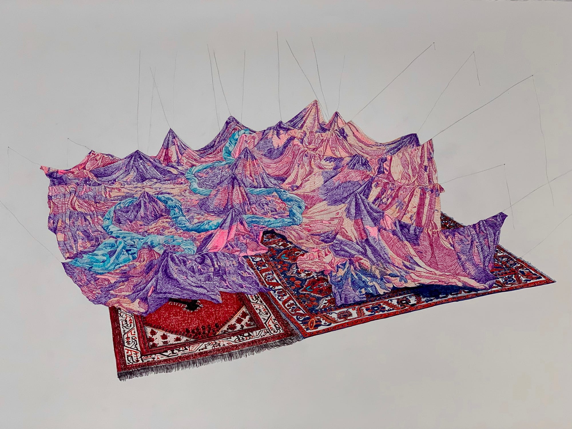 These days, I also think about the destination of Attar’s birds. They fly toward Mount Qaf, the mythical mountain where the Simorgh lives. In Persian cosmology, Mount Qaf is sometimes linked to Hara Berezaiti, the primordial mountain that later became associated with the Alborz range — the same mountains that rise above Tehran.