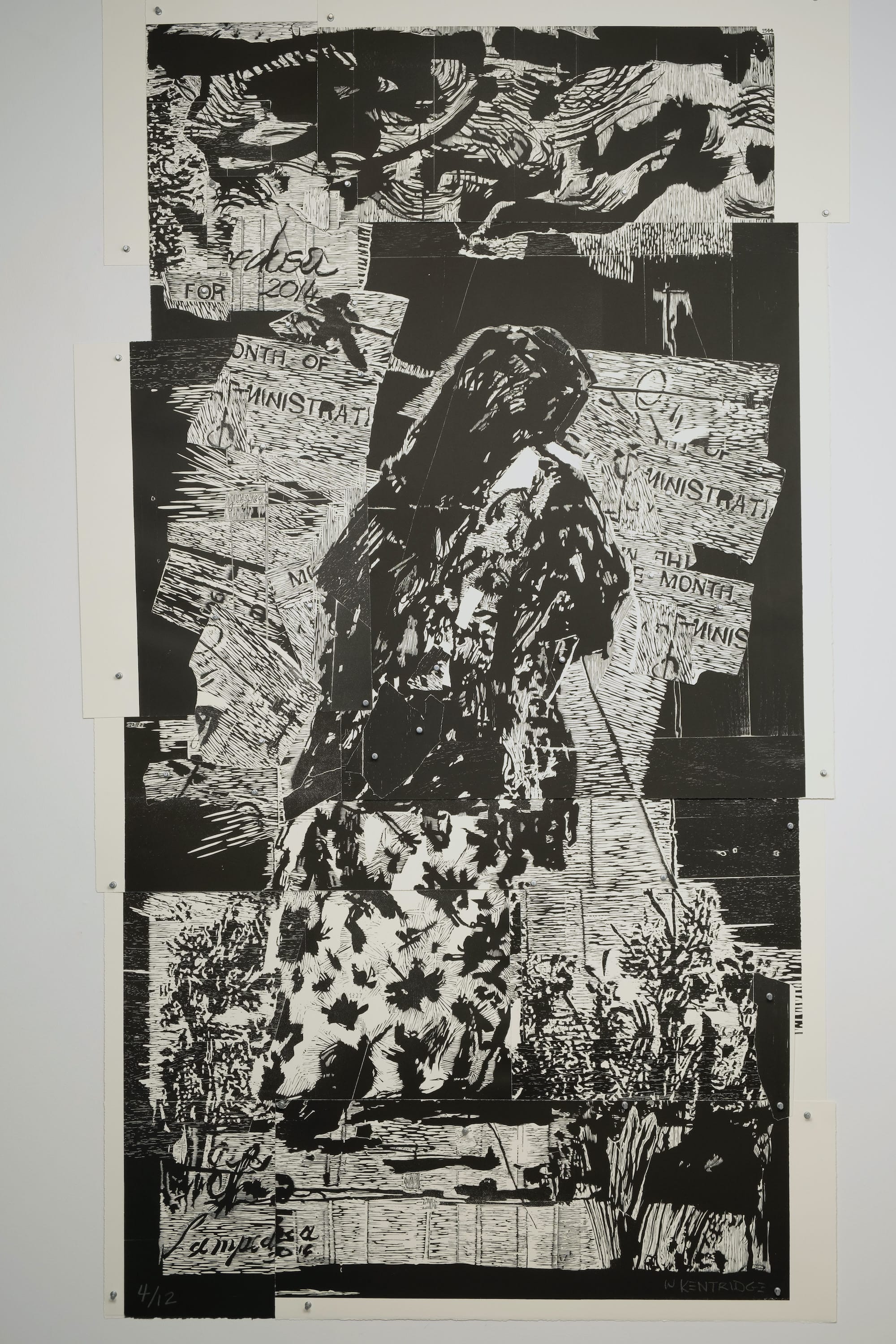 William Kentridge, "Lampedusa" (2017), woodcut, 81 1/2 × 46 inches