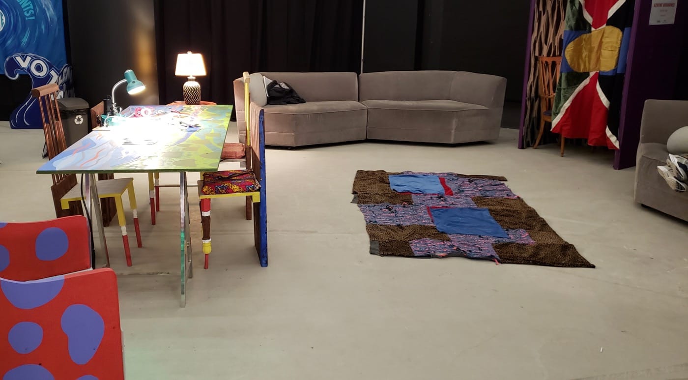 Installed downstairs was Dominique Duroseau’s photo studio — a project that is thematically related to the fair in that Doroseau produces large, black-and-white portraits of Black people, to make them more present, more visible to the popular imagination. When I spoke to her, she told me that she would be present throughout the fair, taking pictures of visitors and workers. Additionally, Azikiwe Mohammed contributed furniture and art pieces to make the downstairs lounge where Lamensdorf and I spoke. The very good news for all the artists involved is that for the first time, they were paid a W.A.G.E.-based artist’s fee. This year’s version also had financial support from the Rubin Foundation, the Lower Manhattan Cultural Council and the New York City Department of Cultural Affairs.