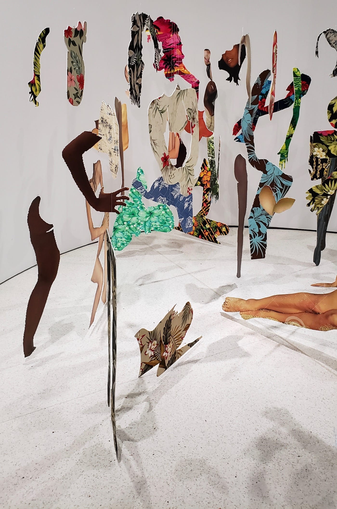 This year 13 artists created installations, such as the large one by Jesus Benavente, titled “I Still Remember You Mijo” (2018), consisting of large, red vinyl lettering spelling out the title of the piece, along with about 600 air-filled white balloons that slowly deflate. It evokes Benavente’s distress as a Mexican-American who has witnessed the malevolence toward immigrant communities leveled by the current federal administration, such as the separation of families at the border. Furen Dai’s “Silverwords” (2018) also consisted of balloons with black vinyl lettering spelling out phrases like “against the tide,” and “fearless,” while some words appeared to be written in Chinese characters. The overlap of their work speaks to New York’s art community, which largely consists of immigrants and has international connections; the precarity of the immigrants’ lives is poignantly evoked by the ephemeral balloon.