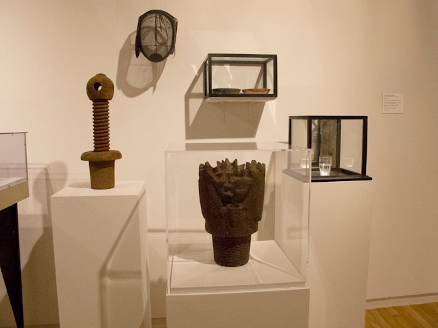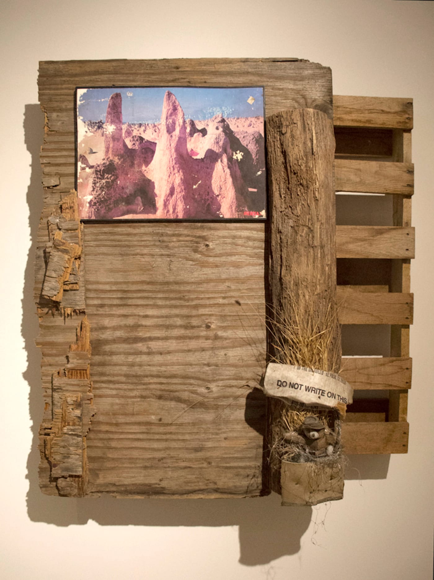 DeDeaux’s portion of the show is a mixture of digital photography mounted on sheet metal and found and fabricated objects. Her work is decidedly more calculated. She is a contemporary artist drawing upon a variety of fabrication techniques to tell her story of the fragile Louisiana environment and her plans for escape in the “Mothership.” Many of her pieces fit together in service of this overarching narrative. There are museum vitrines filled with “souvenirs” of the earth, found urban detritus, soil, ash, and water. While Holley reconfigures found objects into sculptures that are more than the sum of their parts, DeDeaux presents objects in an untouched, precious manner. Like artifacts in an archeological museum, they are carefully displayed and catalogued. Along this same theme, her works’ titles reference extinct civilizations of Babylonia, Athens, Rome, and Luxor. While the work is visually compelling, its presentation can come across as a bit forced, especially in contrast to the unguarded Holley.