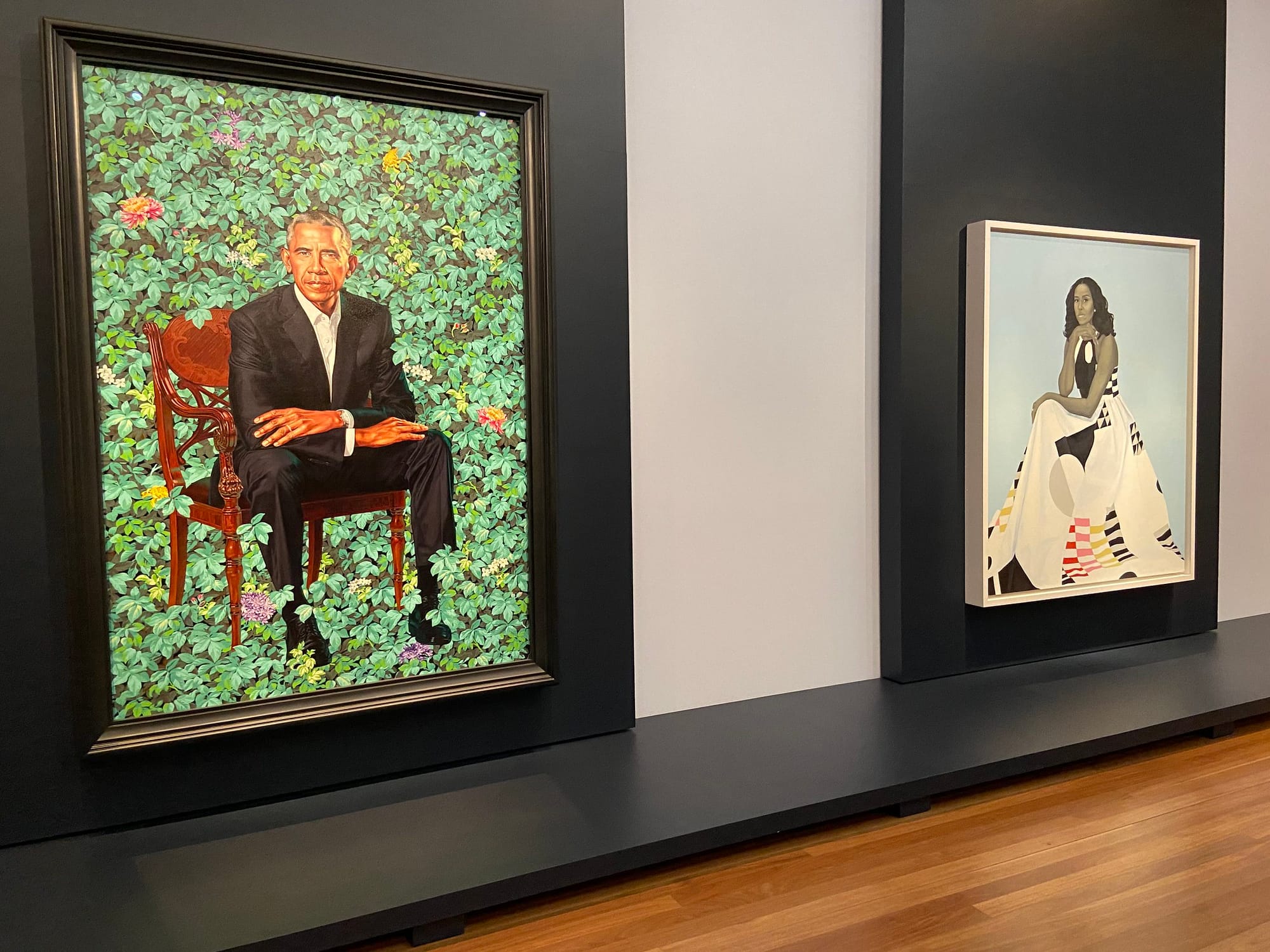 Presidents and first ladies receive two sets of official portraits: One goes to the collection of the National Portrait Gallery in Washington, DC, for public display, and one stays in the collection of the White House. The former, painted by Amy Sherald and Kehinde Wiley, became immediately famous when the portraits were unveiled in 2018 and are now on a national tour. (They are currently on display at the Museum of Fine Arts, Boston.)