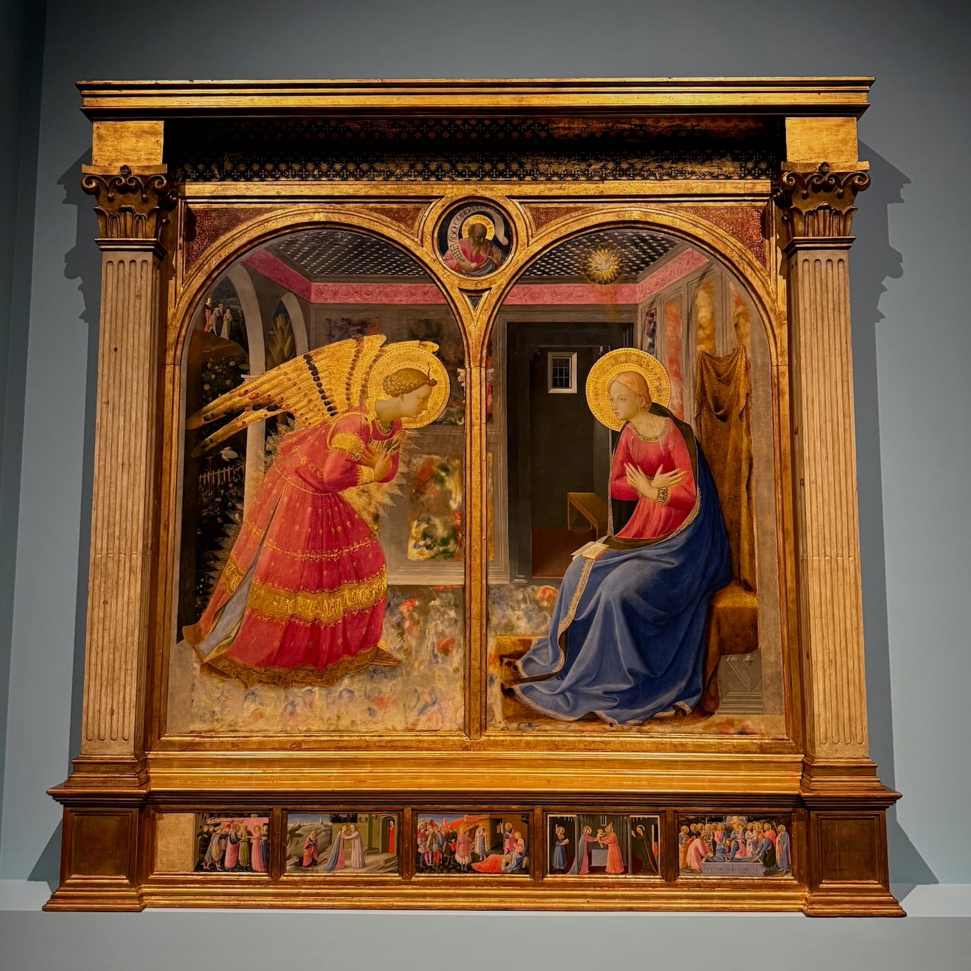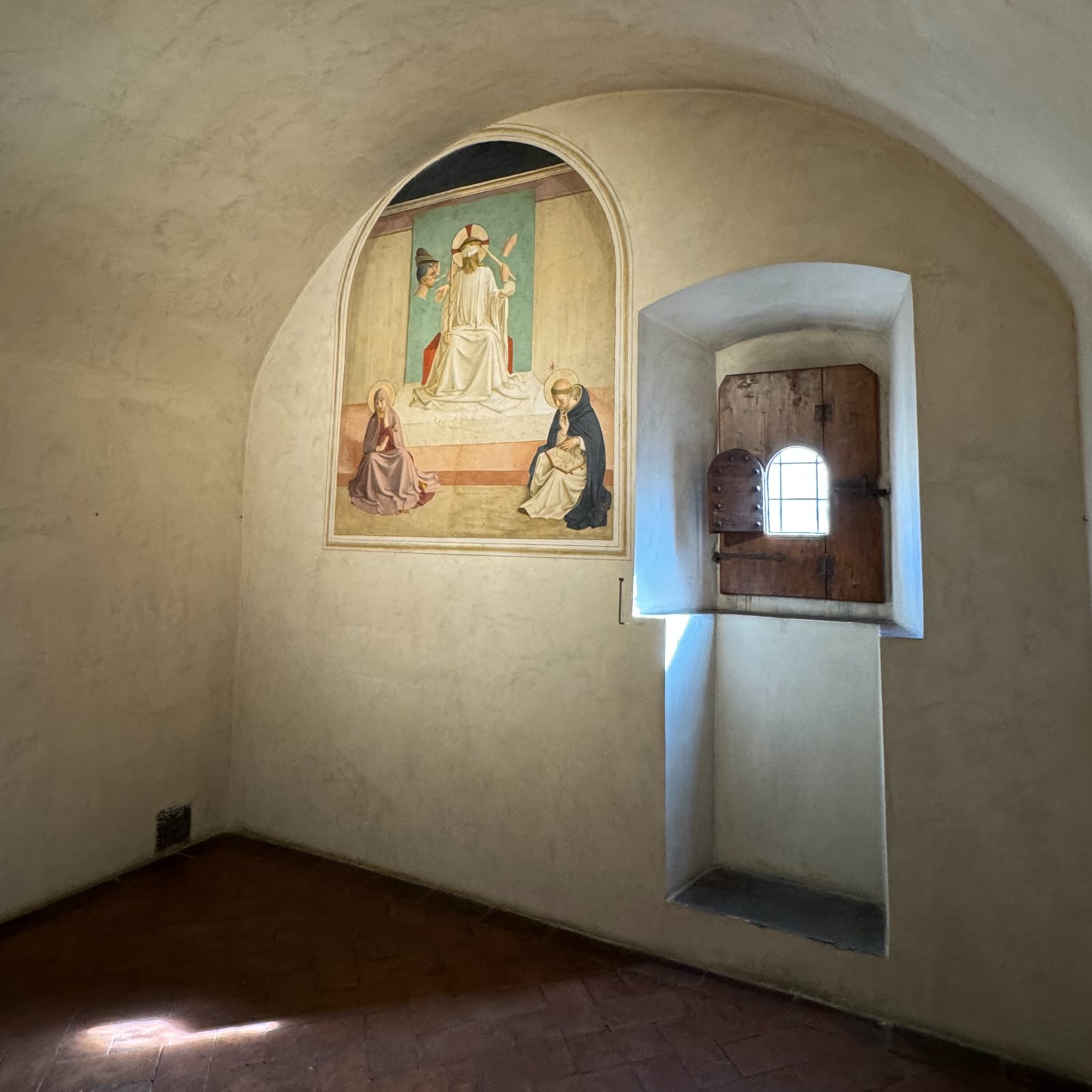 Designating a former monastery, the Museo di San Marco, as the exhibition’s second venue both spotlights the many immovable frescos Fra Angelio painted there for personal devotion in the monk’s cells — for instance, the "Mocking of Christ" (1439–41) — and invites attention to the devotional aspects of the works. Yet the curators avoided one of the most hotly contested questions in Fra Angelico studies. Why did the artist go to such great lengths to incorporate marble and stone details into so many of his works?