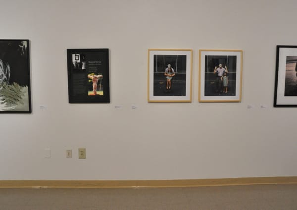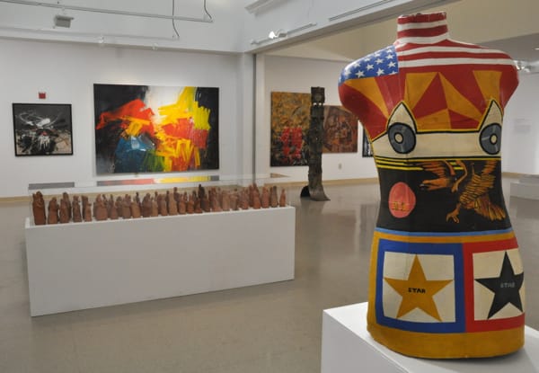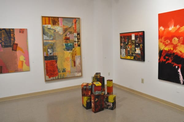 Walking into the gallery was a little jarring at first as the institutional hallways led to a large room dominated by a central skylight. The walls were lined with art, mostly painting, and an occasional sculpture was placed at various points throughout the space.