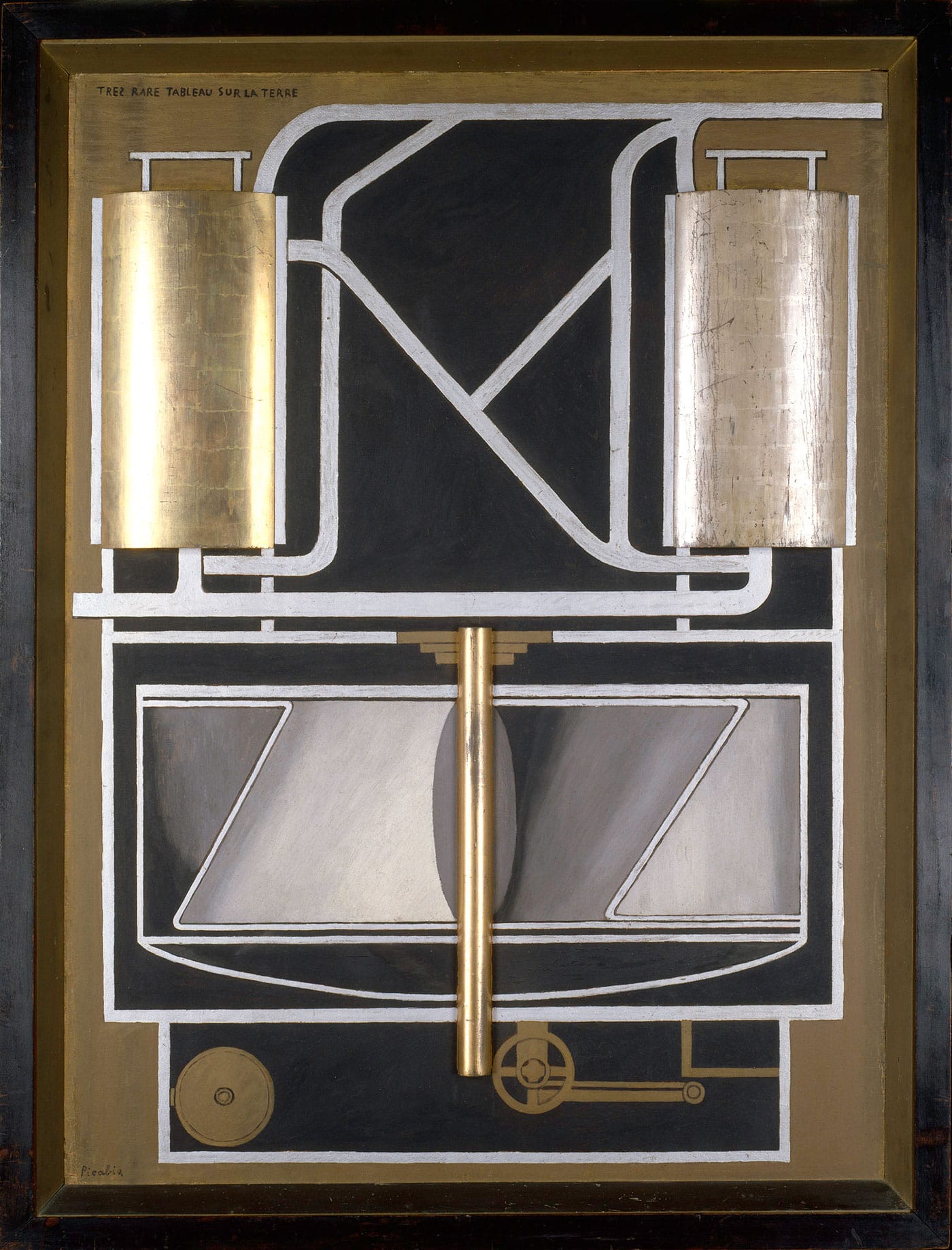 Rarely spending more than a few years exploring a particular path, Picabia abandoned the laborious complexity of Cubism following World War I and went on to help found Dada. In this phase, he made irreverent but inventive, well-crafted portraits of machine parts he called mechanomorphs. Although at the time he was celebrated as a provocateur, his paintings are rarely flippant, and there was intense effort and sincerity in even his most radical gestures. In “Very Rare Picture on the Earth” (1915), a work that could have inspired Peter Halley, Picabia not only uses oil paint but experiments with metallic paint, and introduces gold- and silver-leafed shallow reliefs as real depictions of pictorial volume in the flattened diagrammatic space. It’s believed he even constructed the frame.