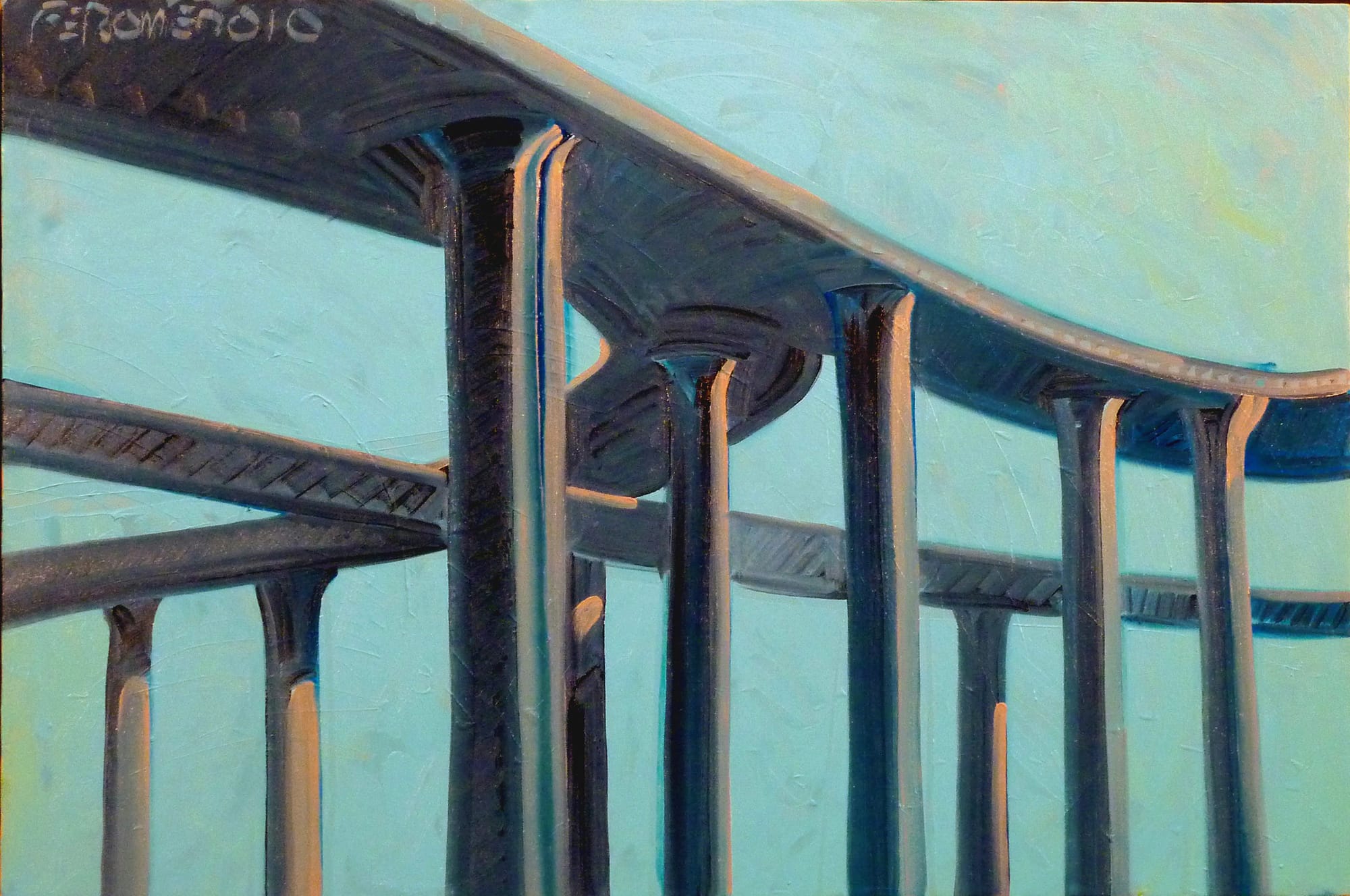 Born and raised in a middle-class family in Boyle Heights, Romero captured the pulse of Los Angeles through his pictorial and more abstract painting of decorated cars and the vast freeways (portrayed as our cultural shrines) connecting the different parts of the city.