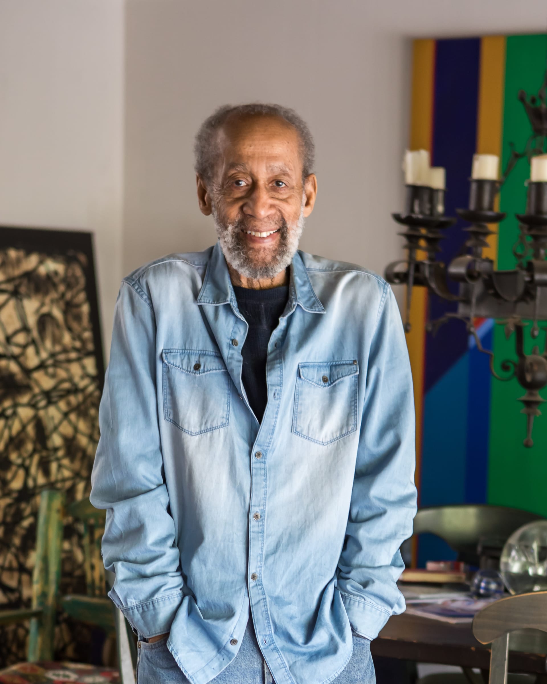 Responding to Wimberley’s determination to create art as he aged, Berry mused in September that persisting to make work throughout one’s life “is the greatest gift an artist can have.” His life was marked by a devotion to experimentation and an excitement for creative possibility. Speaking on the catalyst that spurred him toward abstraction, Wimberley spoke fondly of his friendship with jazz giant Miles Davis, an avid collector of his work. He branched into visual improvisation, he said, because he wanted to do with paint and canvas what musicians like Davis and Charlie Parker did with their instruments. “ I was trying to put myself on a level with those people, with the art,” he explained.