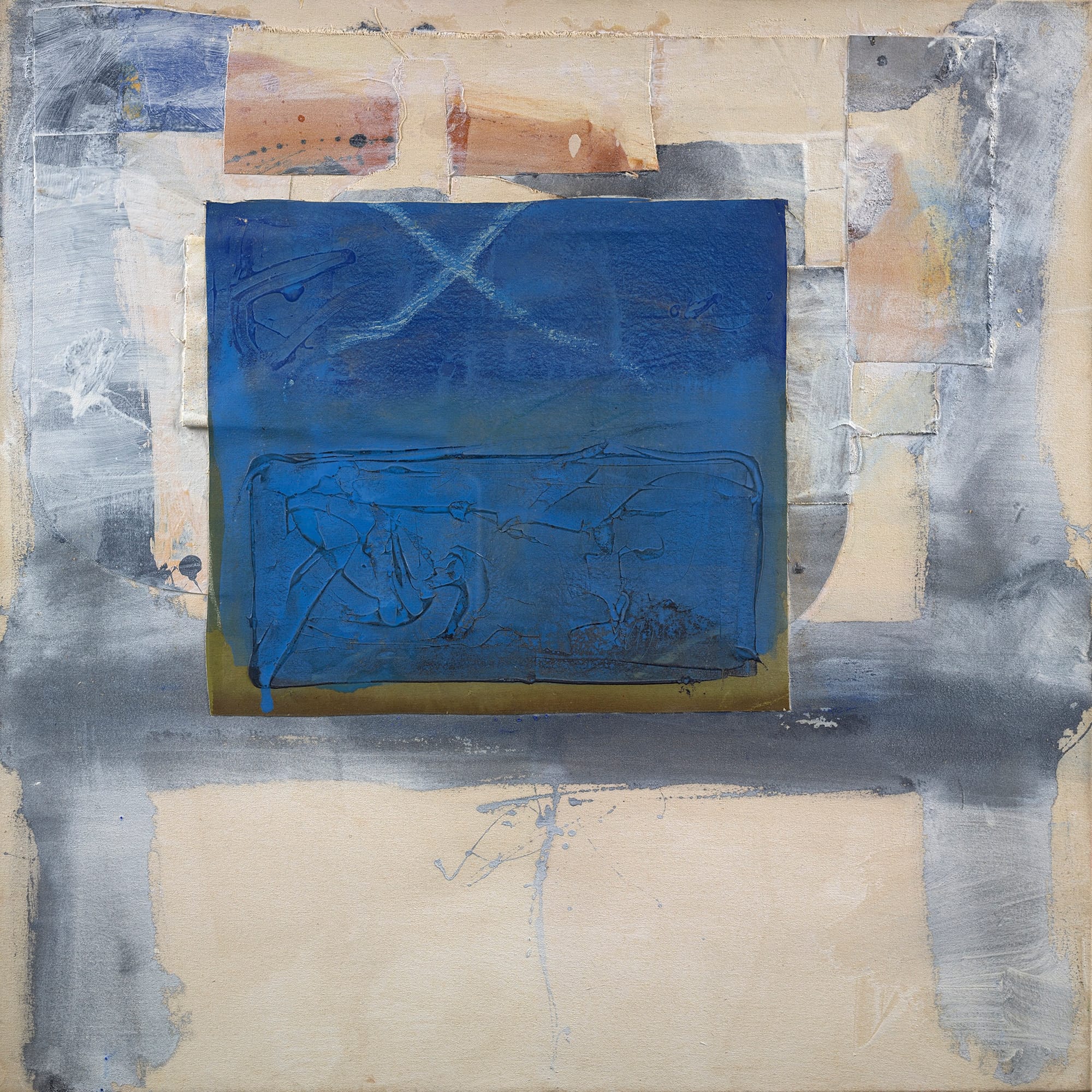 This textural enterprise, he said, was partly inspired by Cubist Pablo Picasso’s use of experimental materials like sand. Picasso, along with Abstract Expressionist Willem de Kooning, served as bastions of inspiration as he developed his own distinct language of abstraction and exploration. Works like “Senegal” (1990) — made of acrylic and collage on canvas over Masonite — exemplify his practice of mixing media and building texture through considered layers and removals. Colors slightly break through a surface coated mostly in off-white, suggesting a hotbed of activity under the surface. Colors and textures are rendered just out of reach, their presence and impact still peering through an exterior that seems minimal at first glance, but reveals itself upon prolonged examination.