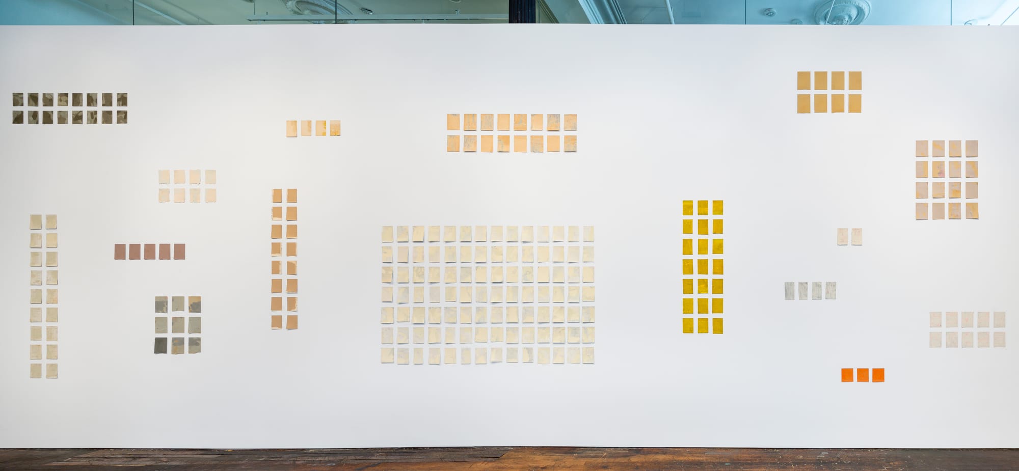 There are also 15 “Line Drawings” (1963), each a piece of paper with a vertical line in the center. According to Walther, the work is inspired by “Line 1000 Meters Long” (1958) by Italian artist Piero Manzoni, which consists of a 1,000-meter-long paper with a line of ink along its length, rolled up and hidden in a metal drum. “I had always espoused the view that a work can only exist in the imagination,” Walther said.