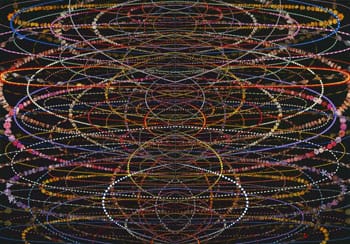 This synthesizing is also how I think Tomaselli’s work should be talked about, in fact. Let’s not discuss the artist’s work in terms of the raw media of his paintings, not in the context of the Ecstasy: In and Around Altered States show. Yeah, there are drugs in the paintings. Most of them are probably illegal in such vast quantities as Tomaselli uses them. But though that’s the form of the work, that’s not the content: in this case, the medium is not the message. Aren’t we all done with the drug hysteria and fetish, now that weed is basically legal in California and the cliches of the painkiller-addicted housewife and the coke-snorting, bowl smoking banker are just that, cliches? So let’s giggle and move on. What’s behind the drugs in Fred Tomaselli?