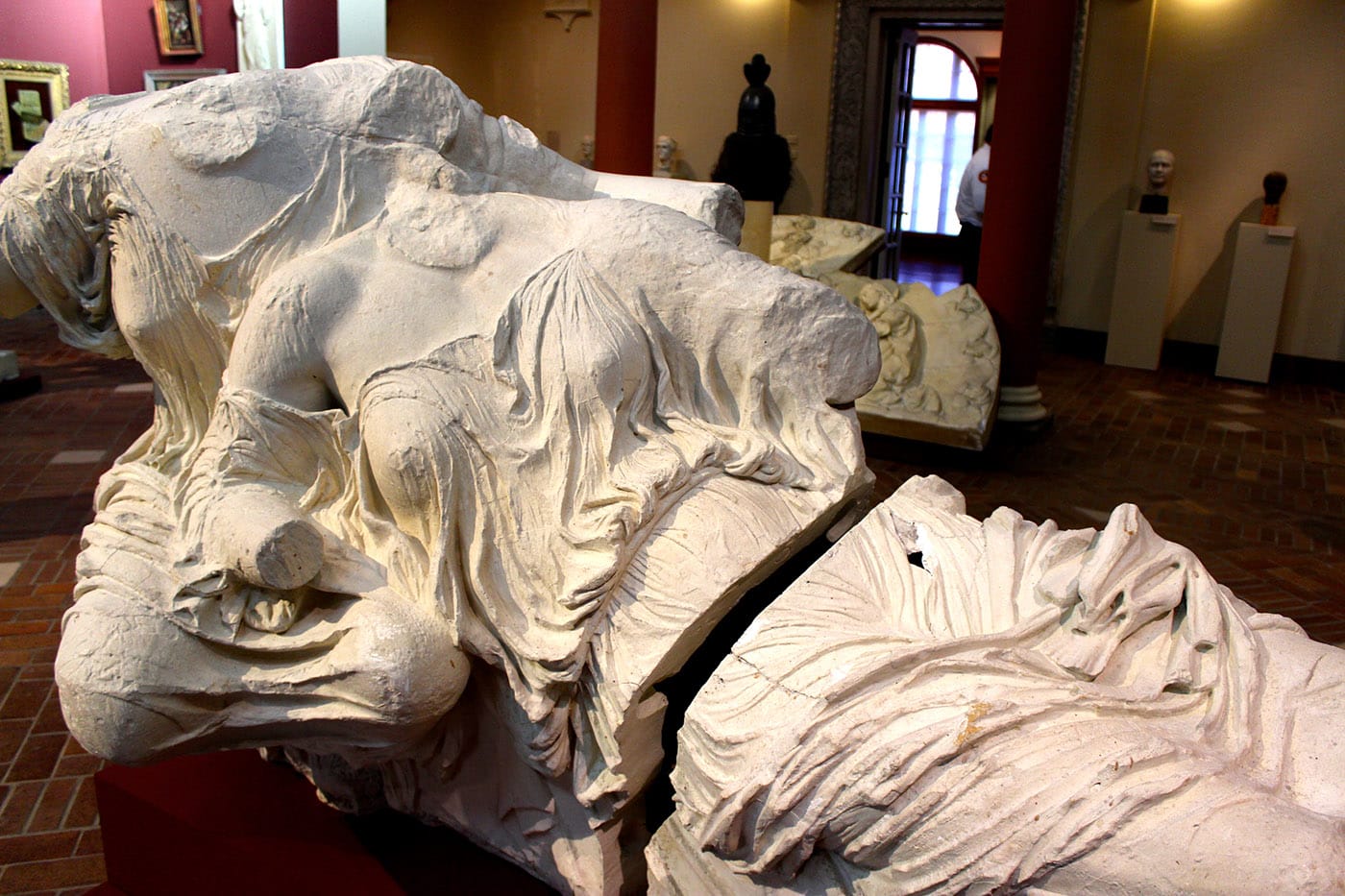 Some of the many fractured plaster casts from the Oberlin archives, on display in Wildfire Test Pit