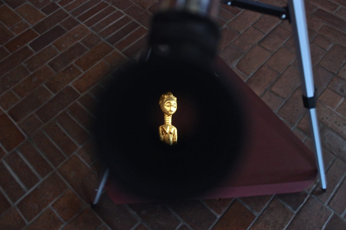 Baule peoples, Female Figure, 20th century, seen through a telescope in Wildfire Test Pit