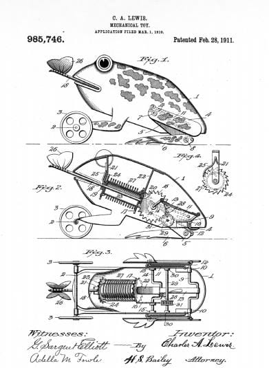 Patent for a mechanical frog toy (1901) (courtesy of the Records of the Patent and Trademark Office)