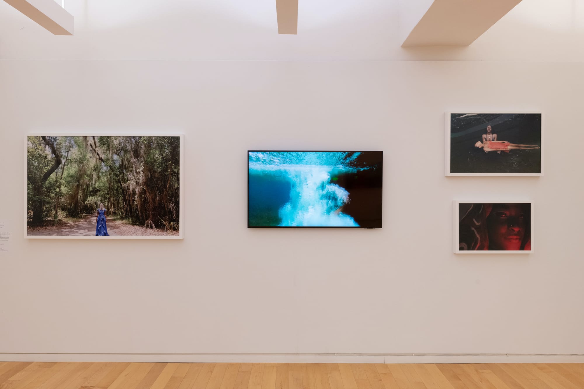 Despite the subject matter, the three-gallery exhibition endeavors to present a mutilayered image of Black girlhood beyond trauma alone. One standout is Shaquita Reed’s “For the Culture Product” (2021) a clear rain jacket whose pockets are filled with hair accessories and beauty supplies. The neon objects are instantly recognizable to anyone who’s ever spent a Saturday morning in a beauty supply or all day at a salon getting a perm. Images by Nydia Blas and Danielle Nolen depict Black women swimming and communing together. Vintage photos of women and girls by Gordon Parks and Chester Higgins Jr. remind us that before our matriarchs were our mothers, they were little girls. In the gallery titled Rest and Recess: The Courtyard, the exhibition transports the viewer to the Caribbean where Black girls play together unburdened and hopeful. A tree, sculpted by Robert Narciso and made from branches from Rekia Boyd’s family home, sits in the center of the room casting a protective shadow over everything. From its branches hang yellow paper hearts scribed with the hopes and dreams of little Black girls. The sound of their joyful cacophony activates the space.