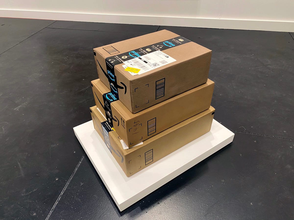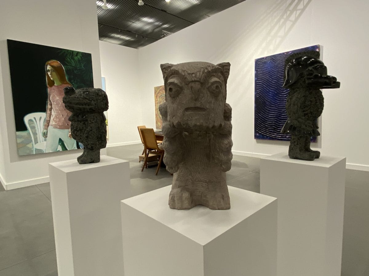Perhaps in an act of rebellion against the show’s sterile vibes, I set out to find the most eccentric art on view. In a sea of the yawn-inducing staples of Park Avenue apartments that typically furnish fair booths (a Josef Albers “Square,” a Joel Shapiro sculpture), I was pleasantly surprised to discover Jennifer Paige Cohen’s uncanny female figures sculpted in plaster, gauze, and clothing scraps in Nicelle Beauchene Gallery’s presentation; a volcanic, over-the-top ceramic by Brian Rochefort caught my eye at Massimo de Carlo’s booth. Karma brought what looked like three stacked Amazon Prime packages that turned out to be highly realistic replicas of painted bronze by LA-based artist Mungo Thomson. “It’s a sign of our times,” gallery director Siniša Mačković told me. I imagined a sly smile behind his mask as a flash of irony crossed his gaze. —VD