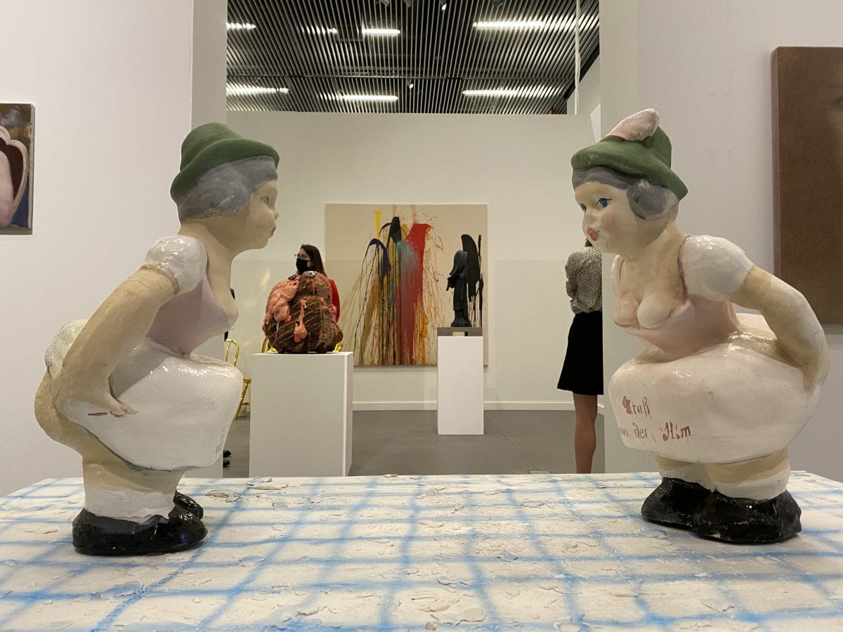 Certainly, being excessively safe is better than the opposite, but I did wonder how many MFA students and other casual visitors were left out of this year’s edition because they couldn’t secure a test or even a pass (tickets were sold out as of Saturday morning.) The price to pay for our health, but the fair did have an eerily empty, aseptic feel — no kooky artists in wacky outfits, no bands of scene-y art kids. —Valentina Di Liscia