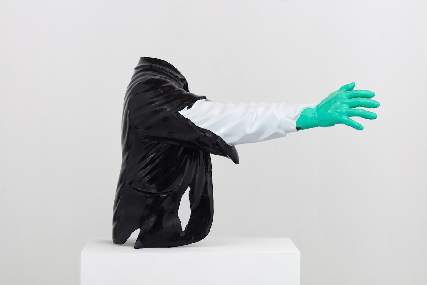 Working with Hollywood prop fabricators, Sayre Gomez has created a sculpture based on a cell phone tower palm tree, the faux flora seen throughout Los Angeles. The piece touches on a double layer of artifice, since the ubiquitous palm trees that have come to define SoCal life are not native to the area, but introduced by settlers, first by Spanish missionaries in the 18th century, and later during a massive planting campaign in the 1930s.