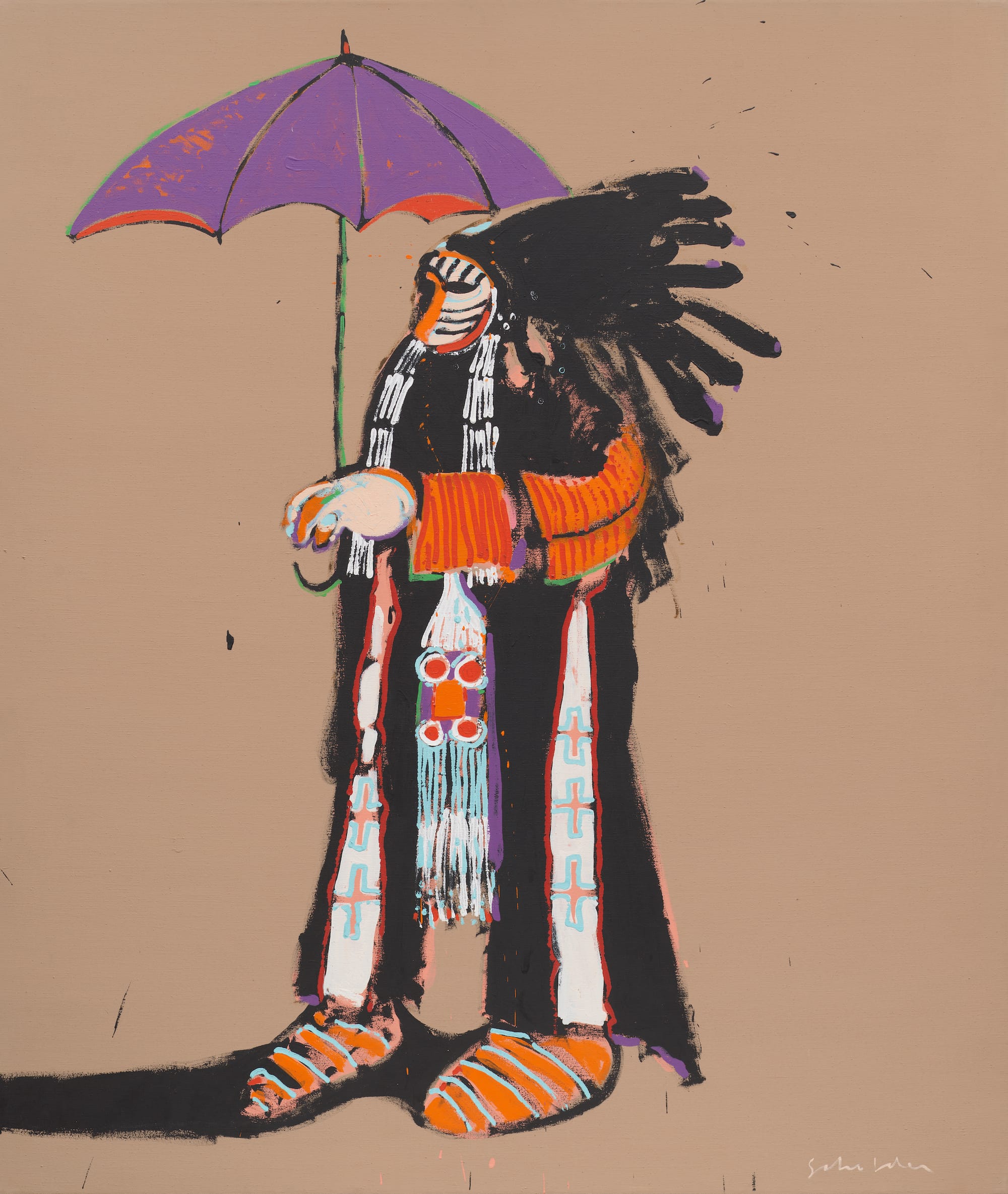 Fritz Scholder, "Indian with Umbrella" (1972), acrylic on canvas, 80 x 68 inches