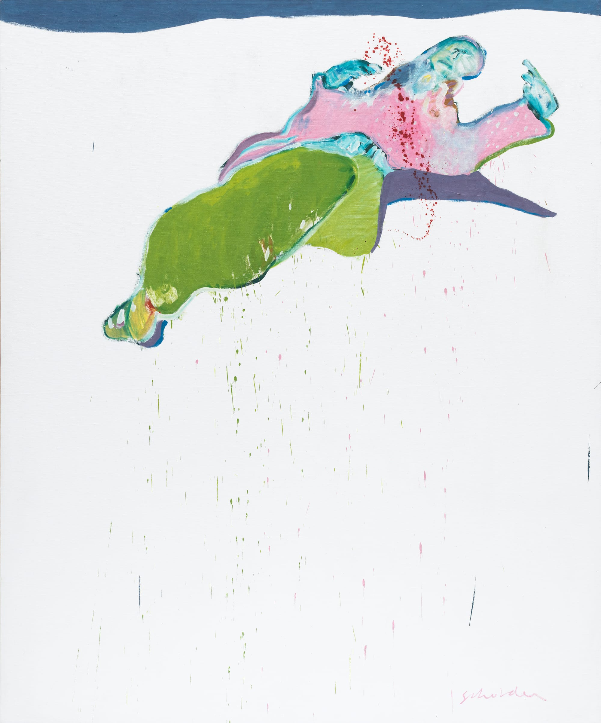 Fritz Scholder, "Dying Indian" (1968), acrylic on canvas, 27 x 40 inches (all images courtesy the Estate of Fritz Scholder and Garth Greenan Gallery, New York)