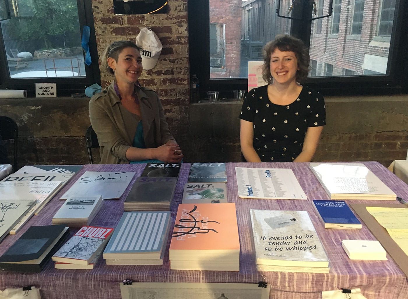 It was 70 degrees and sunny. Visitors who had walked the 17 minutes from the L train, waited for the free shuttle bus, or avoided public transportation altogether by riding their bikes streamed through the parking lot and into the light-filled, high-ceilinged, formerly industrial brick building that housed this past weekend’s BABZ Fair (formerly the Bushwick Art Book and Zine Fair). In its fifth year, BABZ crossed the borough border to set up at the Knockdown Center in Queens, and though the venue is a bit off the beaten path, it was worth the trek. Organized by Blonde Art Books, the fair featured a range of small presses concentrating primarily on poetry and art, reading spaces, and zinesters, in addition to an ambitious two-day schedule of programming.