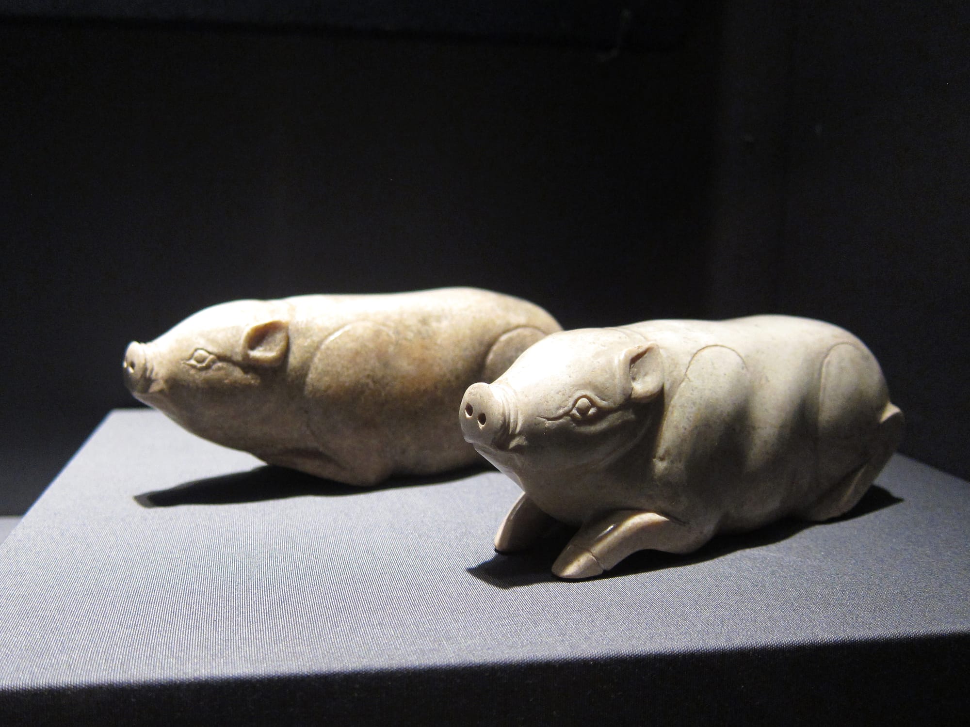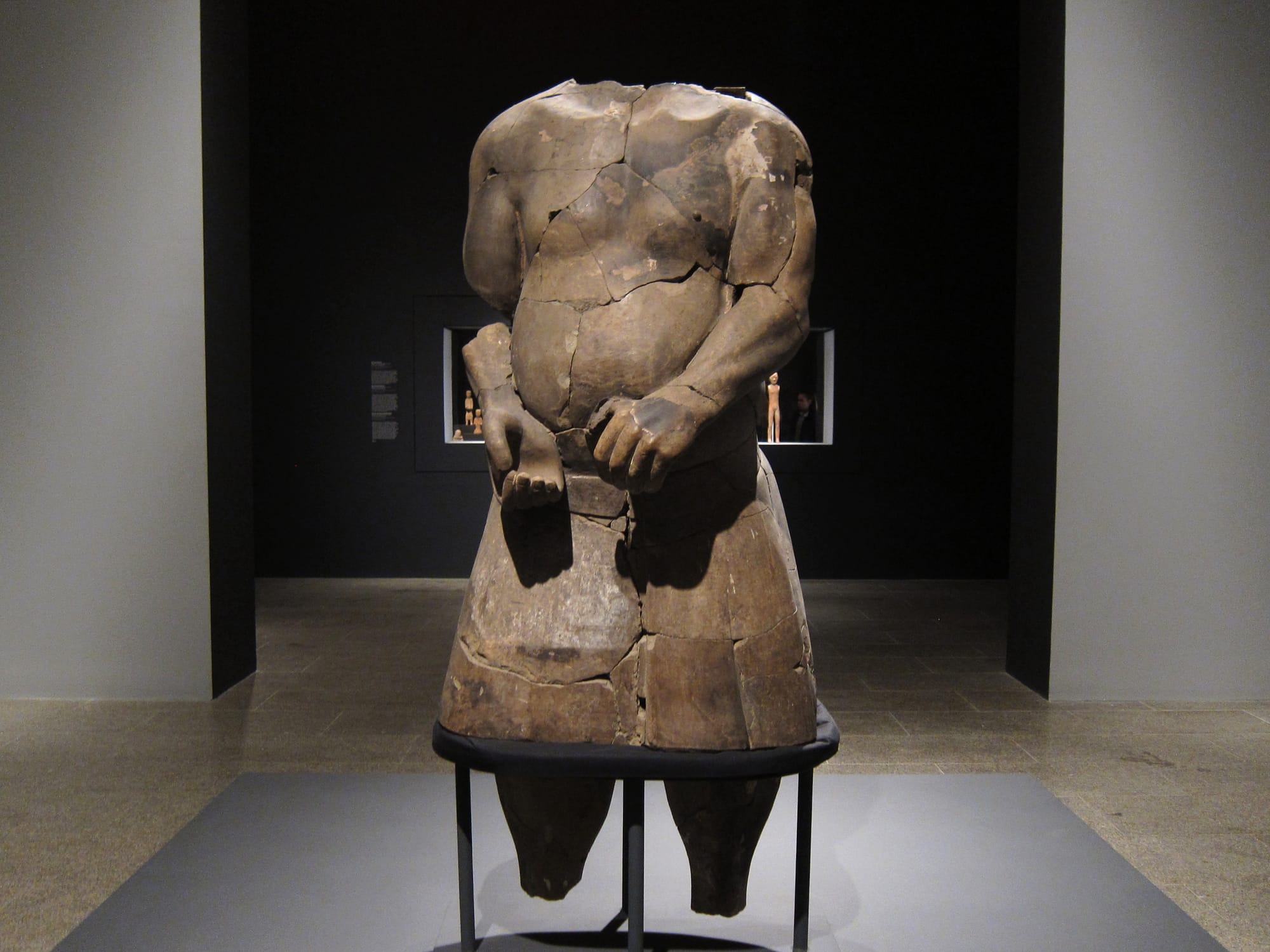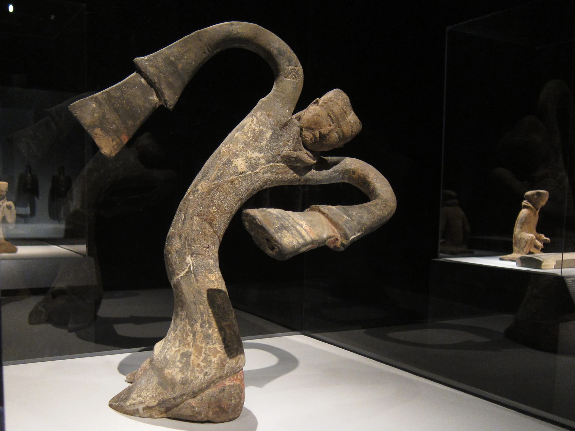 The long histories of the Qin and the Han dynasties, which witnessed the centralization of government and the standardization of everything from laws to the economy to written language, are glossed over in a handful of wall texts. The exhibition relies largely on visual splendor, with the objects, most of which are accompanied by short descriptions, serving as traces of a clearly astounding past. That this didn’t bother me is a testament to the allure and evocative power of almost every piece on view, from tiny jade pigs intended to serve as hand warmers for the dead to a life-size, terracotta statue depicting a rotund strongman — a performer in an acrobatic troupe who likely entertained the imperial court of China’s first emperor, Qin Shihuangdi. (Detailed historical context, for those who seek it, can be found elsewhere, in the show’s dense catalogue.)