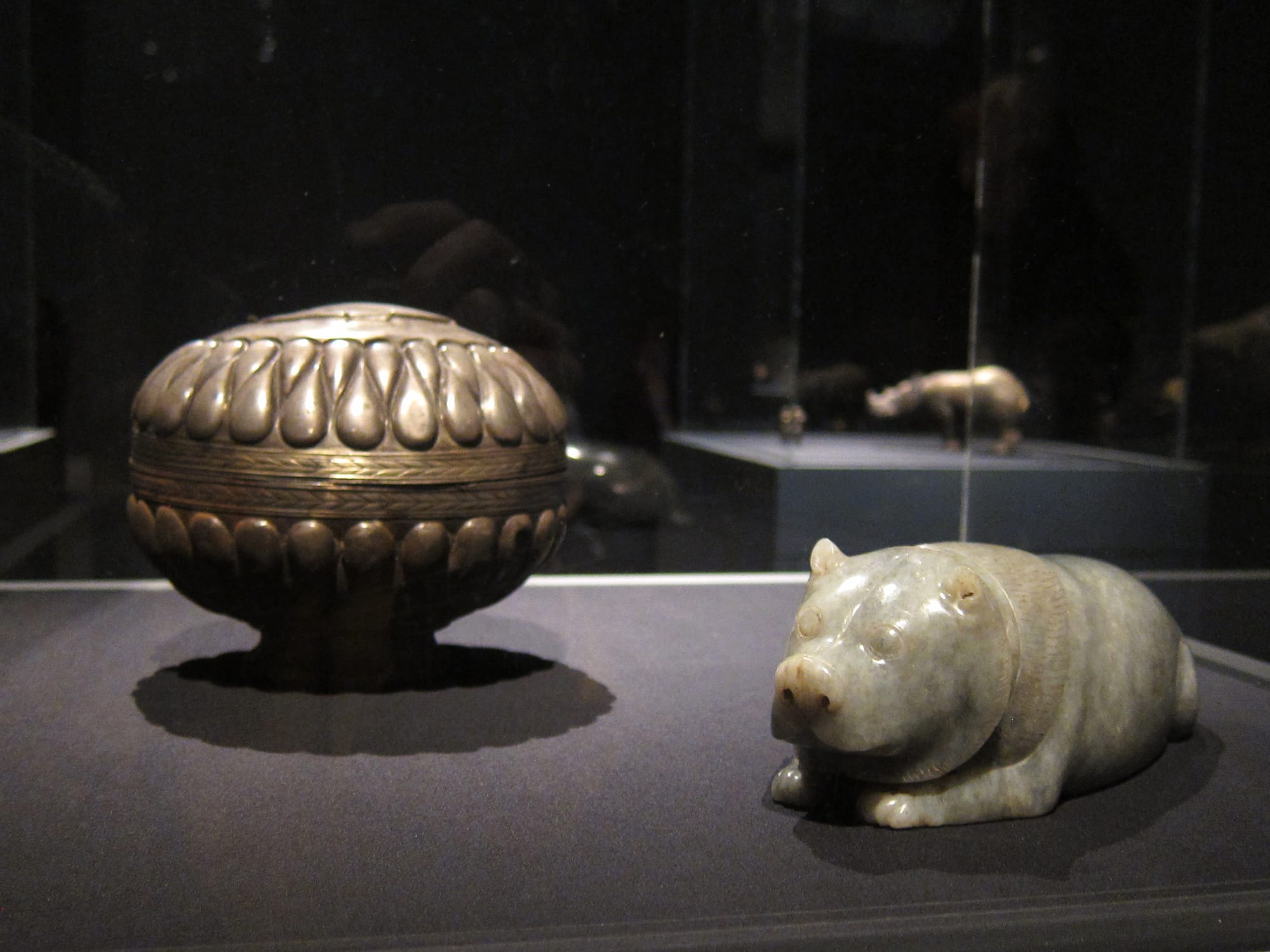 Organized chronologically, Age of Empires begins with what are probably the most recognized jewels of ancient Chinese art outside of that country: five examples of the terracotta warriors from Qin Shihuangdi’s mausoleum complex, along with eight nearly life-size earthenware horses pulling two chariots (modern replicas of Qin originals). It’s a crowd-pleasing introduction, but also one that exemplifies the naturalism that characterized Qin works: the curved forms of the frozen archers, originally painted, are particularly elegant, and you’ll notice that each warrior bears an individual visage. It’s easy to forget that the results of this painstaking labor were never intended for our world of the living, produced to reside underground for eternity and endure as markers of an emperor’s eternal power.