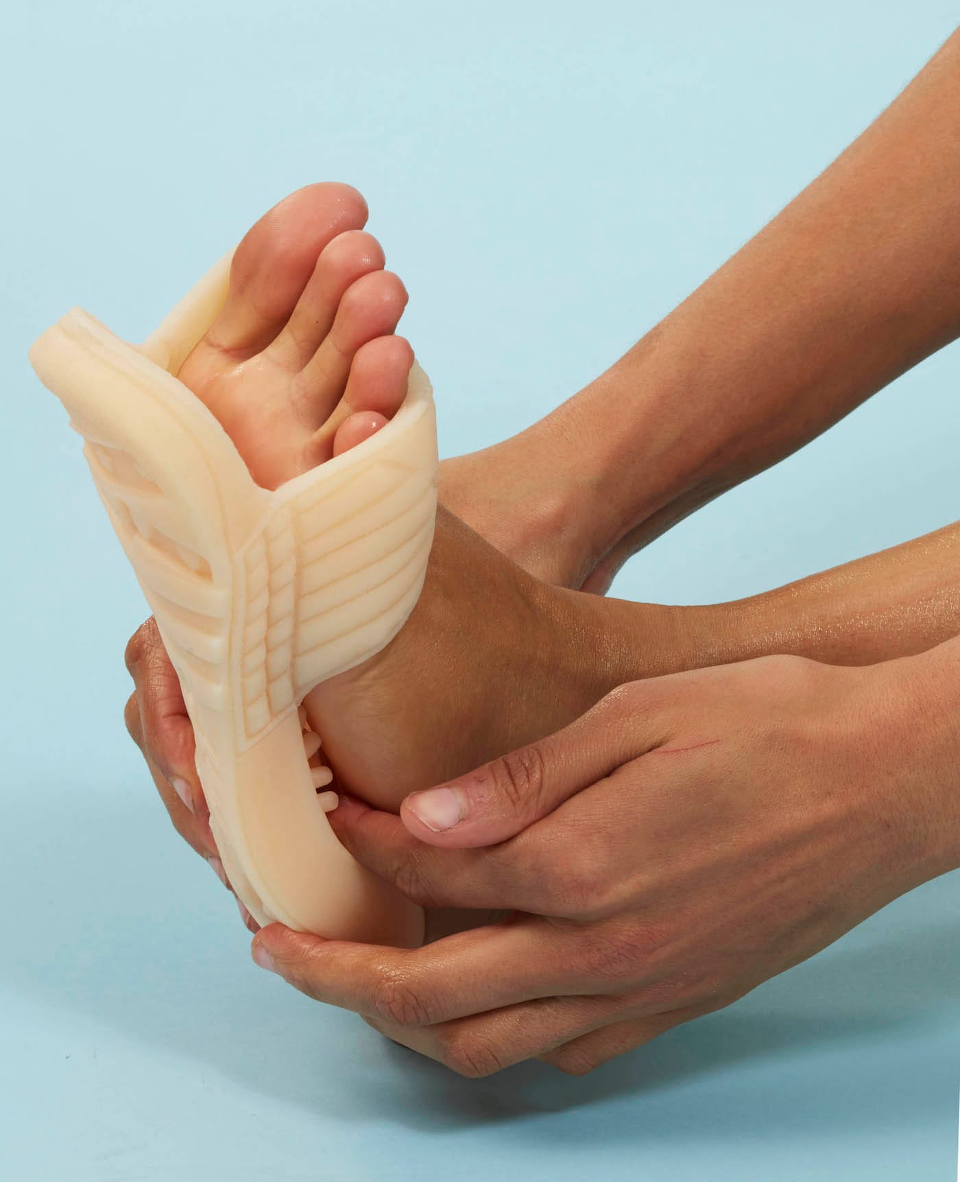 Fan’s photographic series “Soft Goods” (2017) particularly engages with the topic of race, and how skin color governs our lives. The photographs portray a darker-skinned model slipping on peach-colored Adidas slippers. Their poor fit represents Fan’s experience as a Chinese person who has lived in Western-fetishizing places such as Canada and Hong Kong. Fan spoke specifically about Chinese people’s eagerness to assimilate and become “whitewashed” within the pursuit of wealth and status, an internalized racism incubated by the classism and anti-blackness deeply rooted in Chinese culture. “Soft Goods” speaks to the complicity involved in proliferating white supremacy within the marketing of goods, product design, and the standardization of a lighter-skinned ideal. This accountability is a rare component of socially engaged art, which in this case speaks to the East Asian experience as one that has both contributed to and been damaged by racist systems.