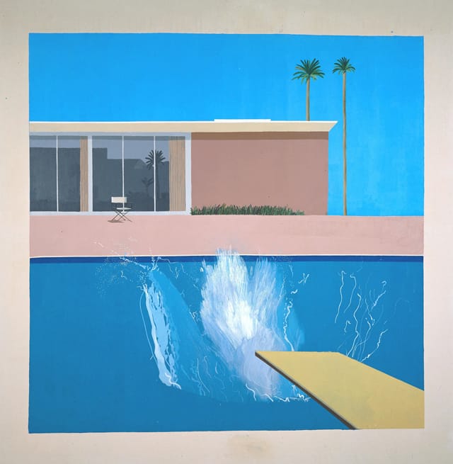 Then there is Hockney’s 1967 “A Bigger Splash,” rendered by a painter resistant to Abstract Expressionism. “When you photograph a splash,” he noted, “you’re freezing a moment and it becomes something else.” Realizing a splash could never be seen this way in real life because it happens too quickly, Hockney chose to paint “A Bigger Splash” “very, very slowly,” so as to capture the essence of the moment. In the flesh, the painting is a testament to Hockney’s ability. Considering street photography’s debt to Cartier-Bresson’s “Decisive Moment,” “A Bigger Splash” is a painter’s challenge to photography; reclaiming the painting as a frame that captures action at a time when the representation of life in motion was taken over by the street photography movement.