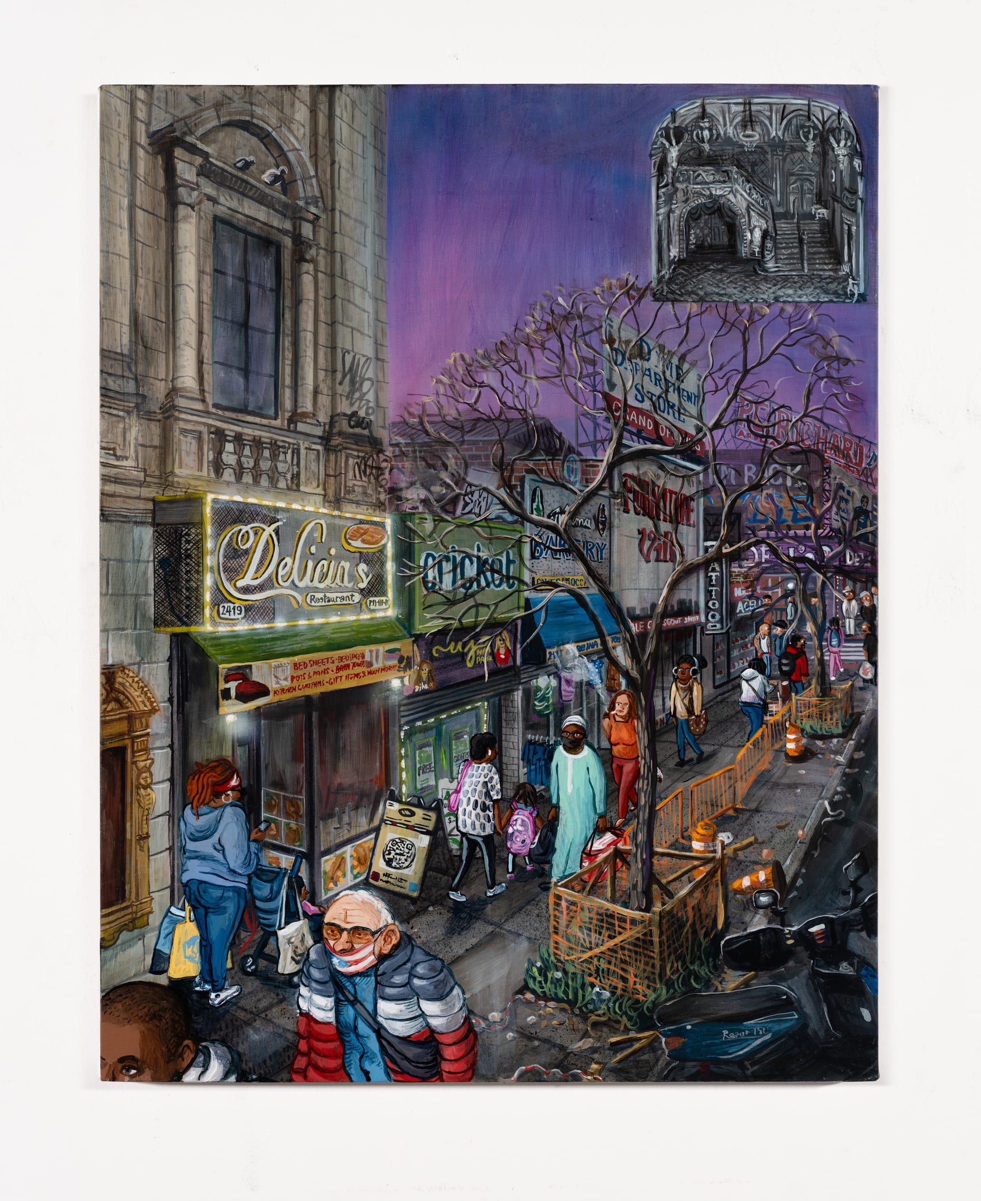 Now a resident of Brooklyn's Greenpoint neighborhood, Tadić was born and raised in Zagreb, Croatia, and moved to New York to earn an MFA, graduating in 2020 and staying through the pandemic. But he says he still paints from an outsider's perspective. With dozens of scenes so distinct from one another, even when the locations they portray are geographically close, the finished series probes the notion of whether one can truly ever know a place.