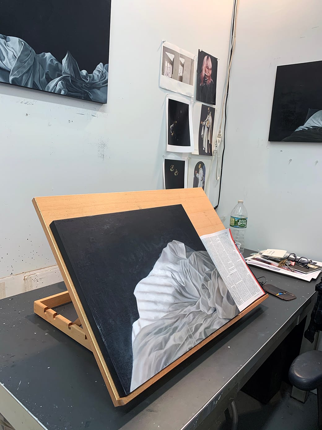 Continuing the interior theme but shifting from the domestic to the introspective, the bedroom paintings of Stephanie Serpick at TI Art Studios turned white rumpled pillows and sheets into almost divine-inspired vestments, much like the religious robes she studied while painting them. Facing post-election blues, she explained, the bedroom became a place of sleep and solace. Painted in extreme chiaroscuro, the emptiness of bed sheets creased by an absent figure created a strong feeling of respite. Her carefully sanded surfaces gave the bedding a smooth, distant feel that was part dreamscape and part nightmare. The series, titled “It’s Always Darkest Before Dawn,” seemed to be a relatable reflection on solitary escapism and collective fear.